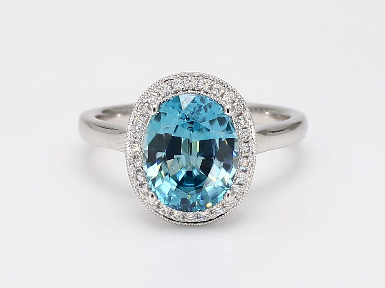OVAL BLUE ZIRCON & ROUND DIAMOND 14KW RING