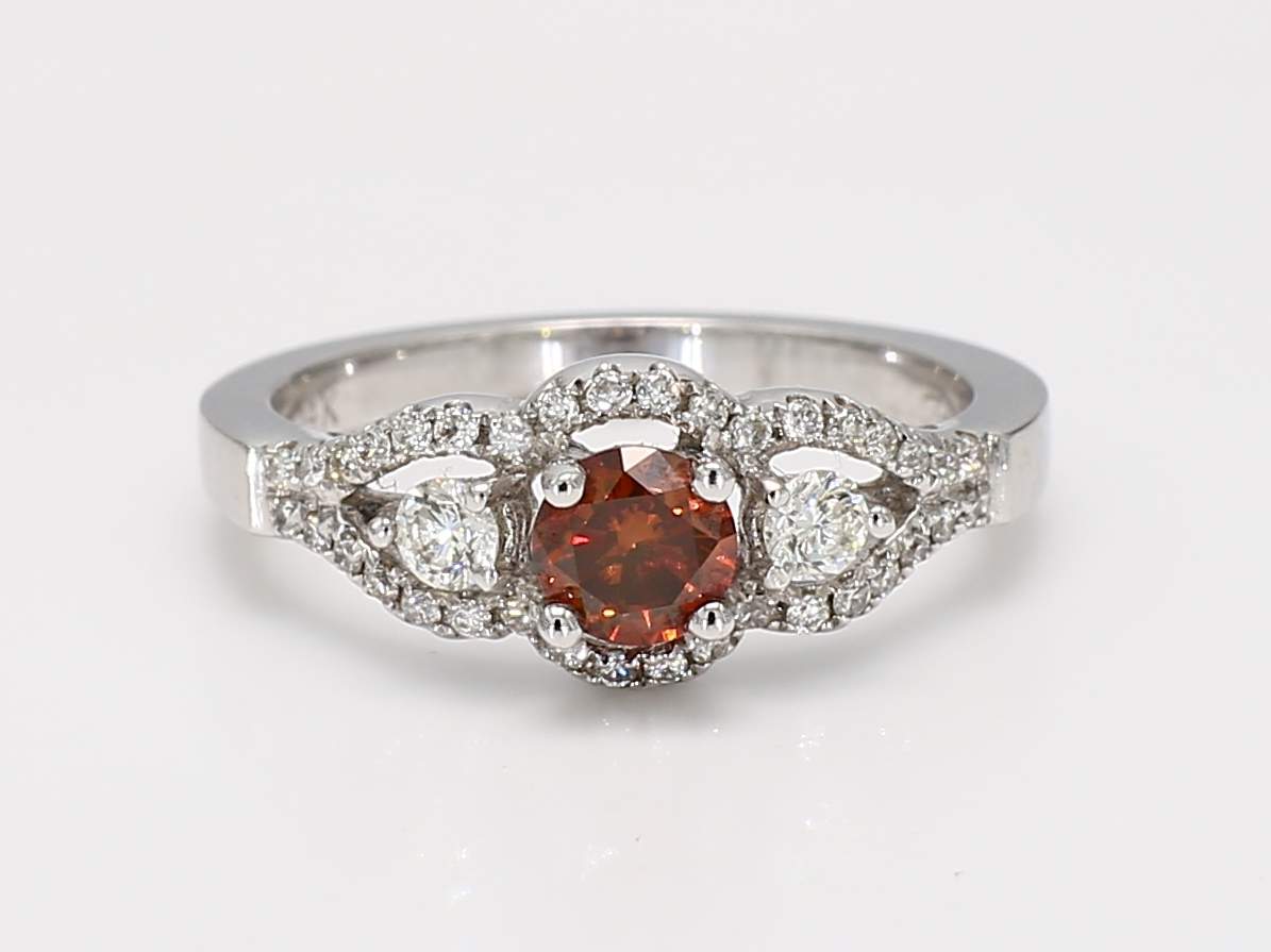 ROUND FANCY DEEP BROWNISH ORANGEY PINK SI1 HPHT DIAMOND GIA 5141015960 & ROUND DIAMOND 14KW RING