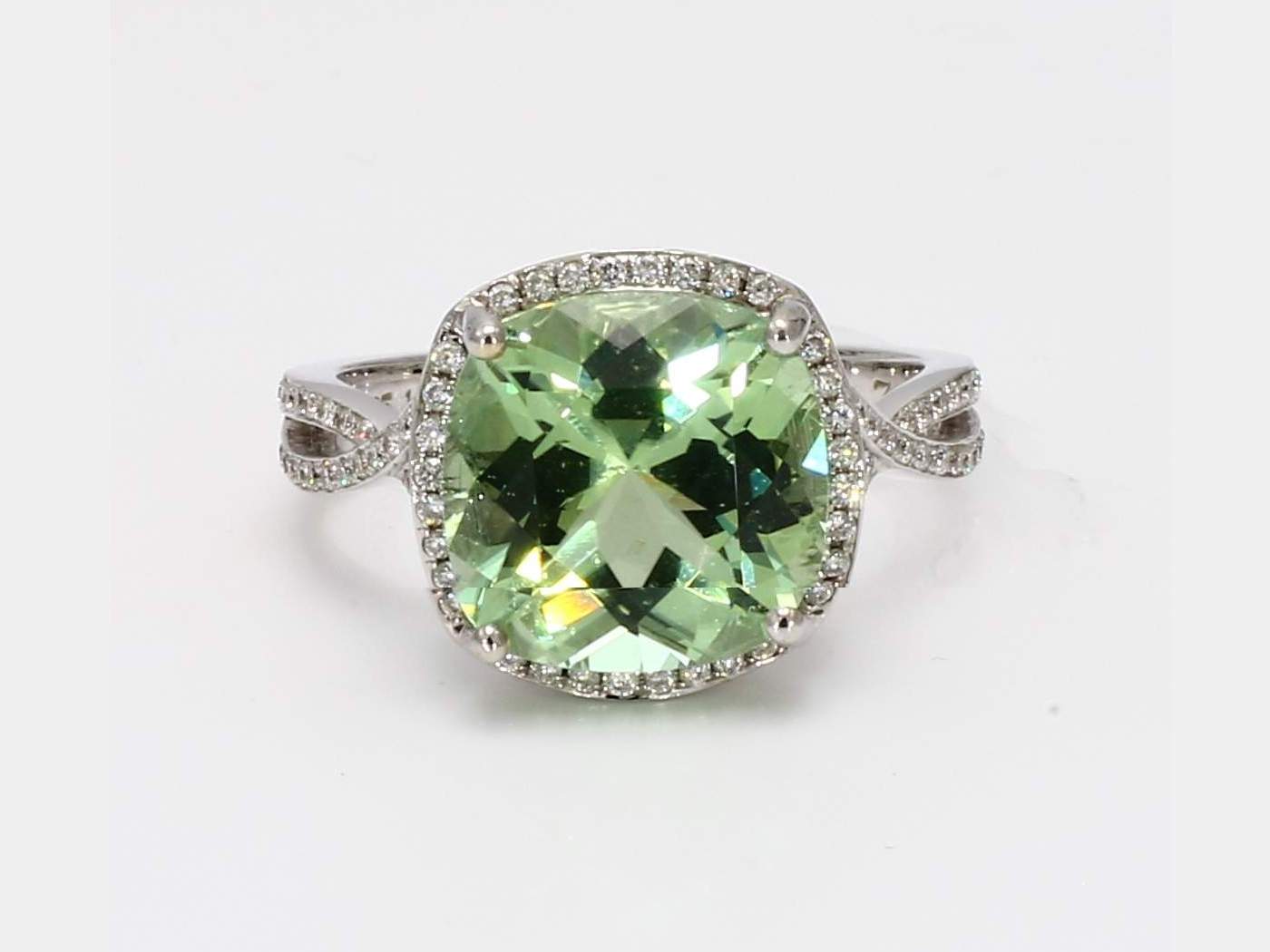 RADIANT GREEN TOURMALINE & ROUND DIAMOND 14KW RING