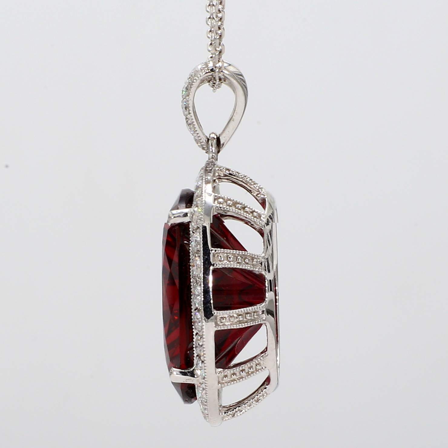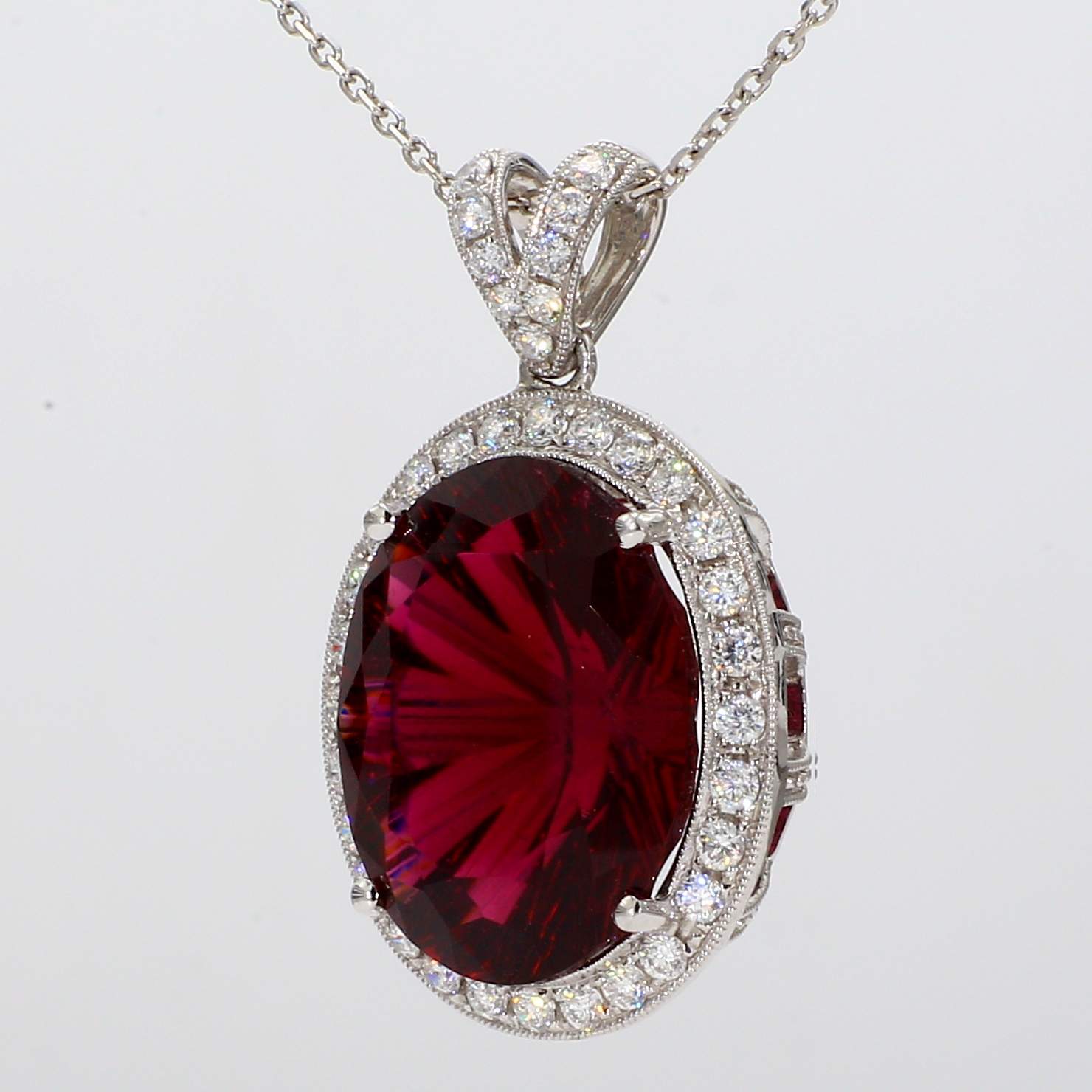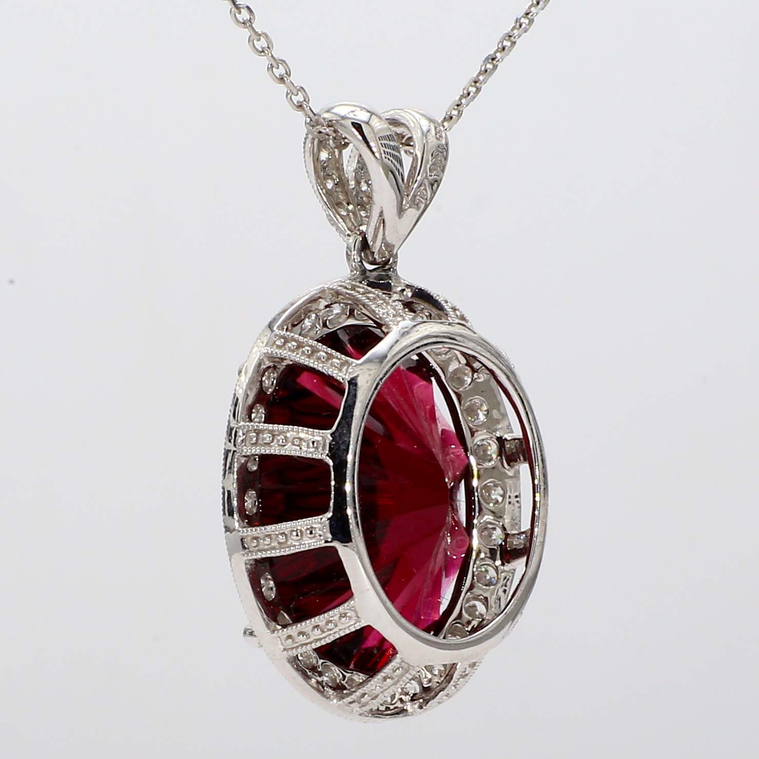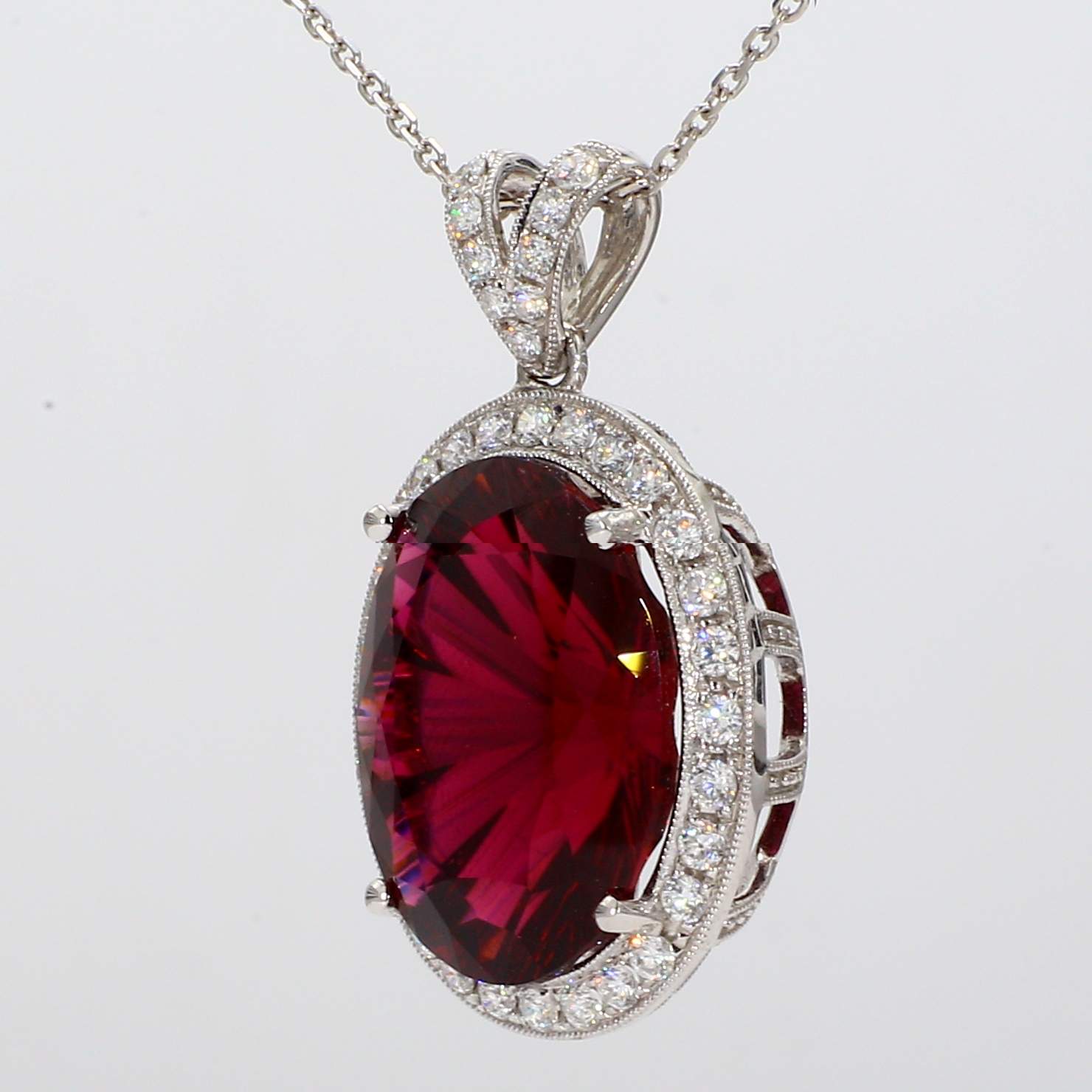 OVAL RUBELLITE & PAVE' DIAMOND 14KW PENDANT