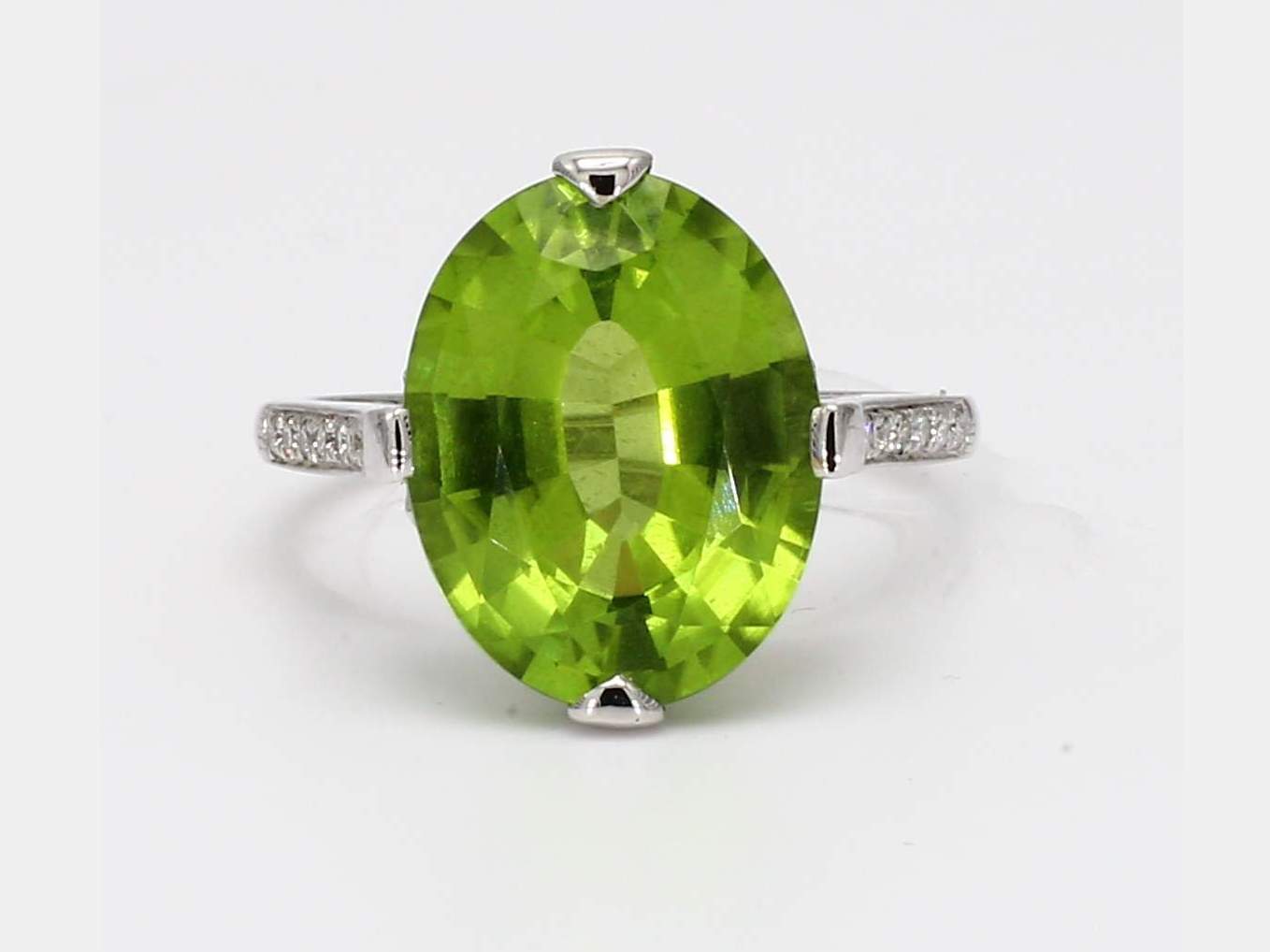 OVAL PERIDOT & PAVE' DIAMOND 14KW RING
