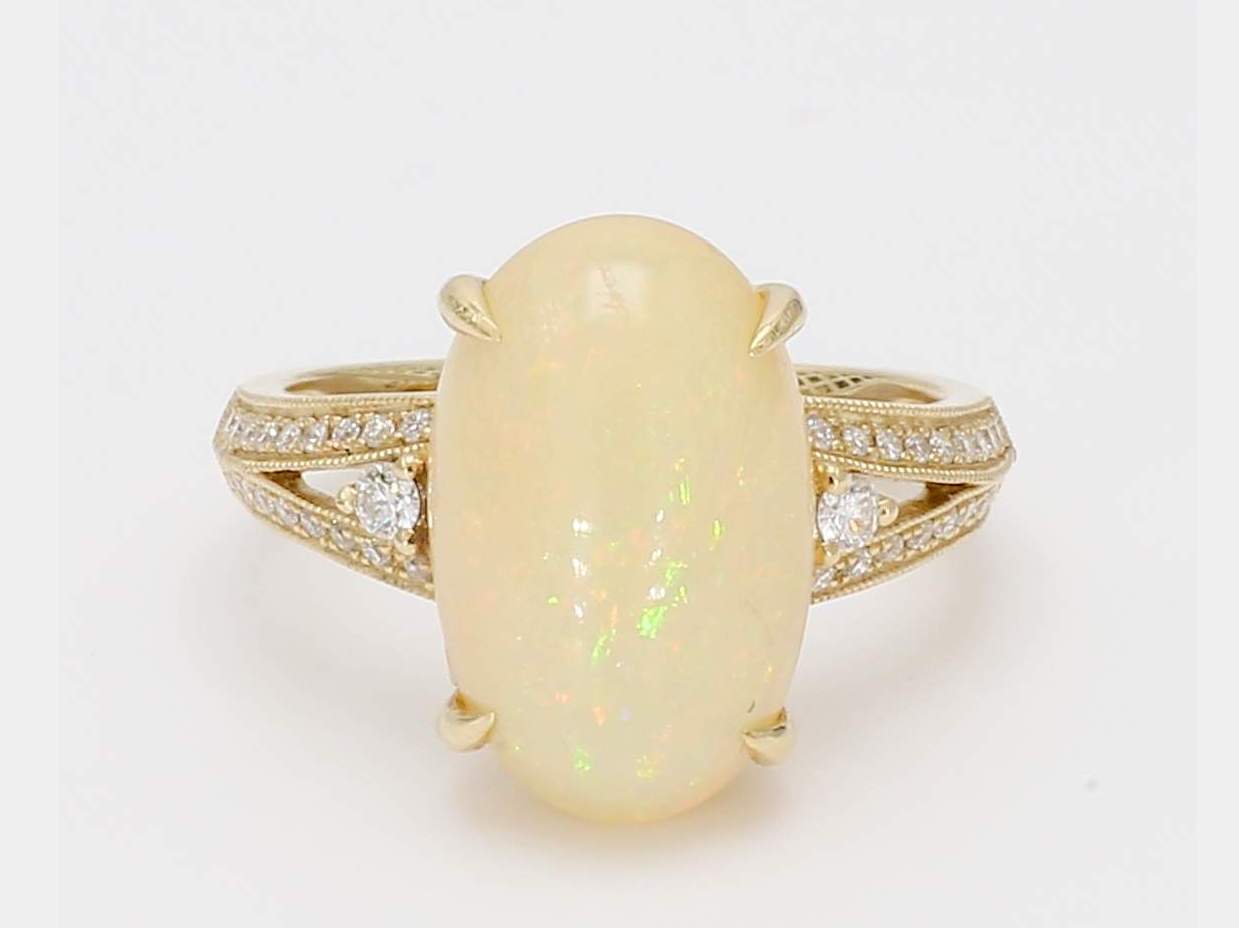 OVAL OPAL & ROUND DIAMOND 14KY RING