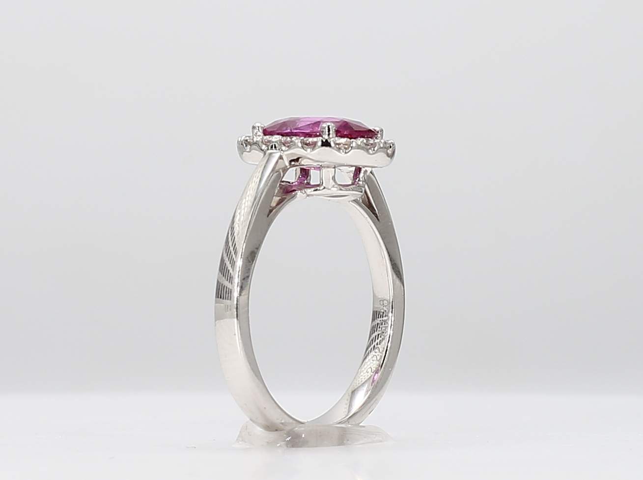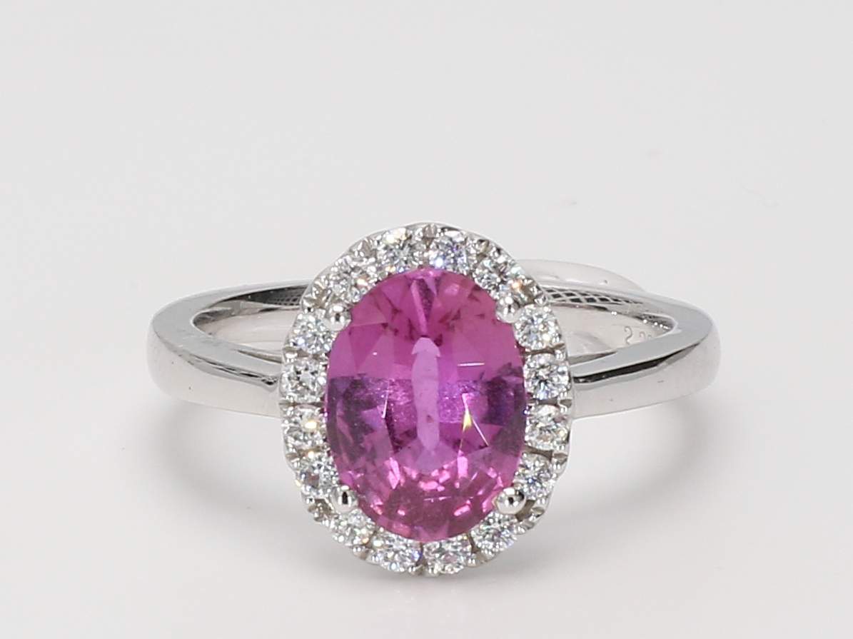OVAL UNHEATED PINK SAPPHIRE GIA 6177002631 & ROUND DIAMOND 18KW RING