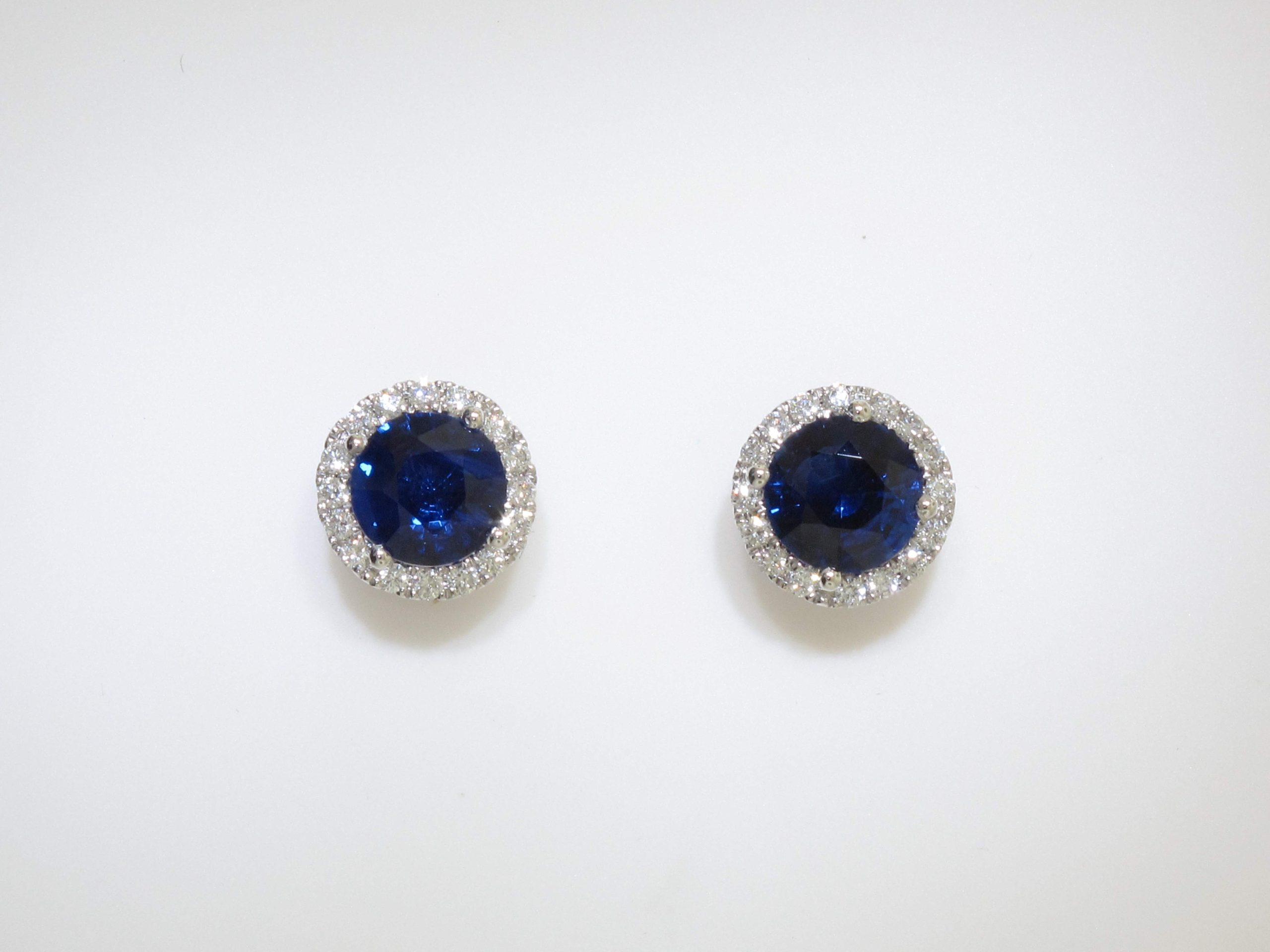 ROUND SAPPHIRE & ROUND DIAMOND 14KW EARRING
