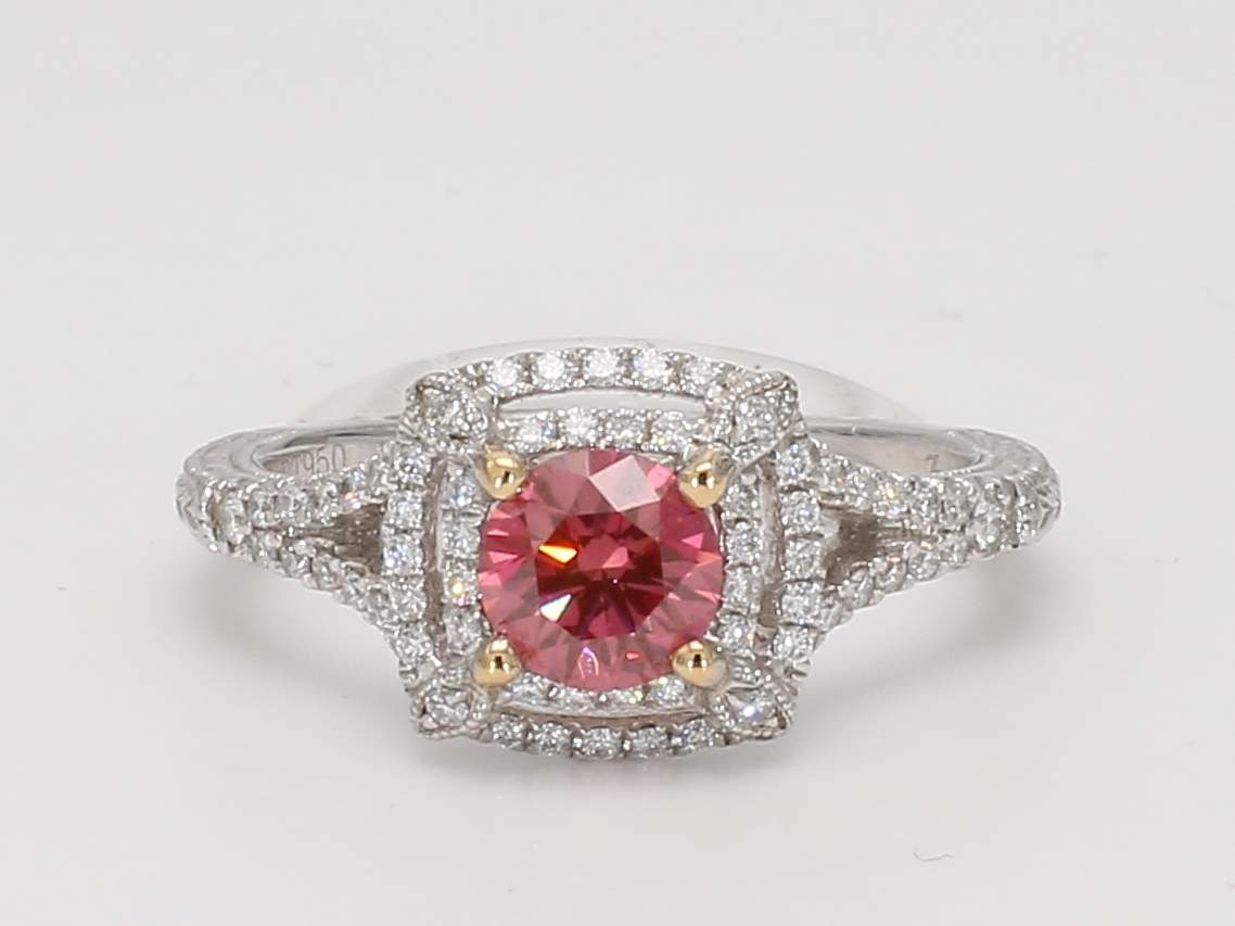 ROUND FANCY PURPLE RED HPHT DIAMOND VS2 GIA 2165333989 & ROUND DIAMOND PLATINUM RING