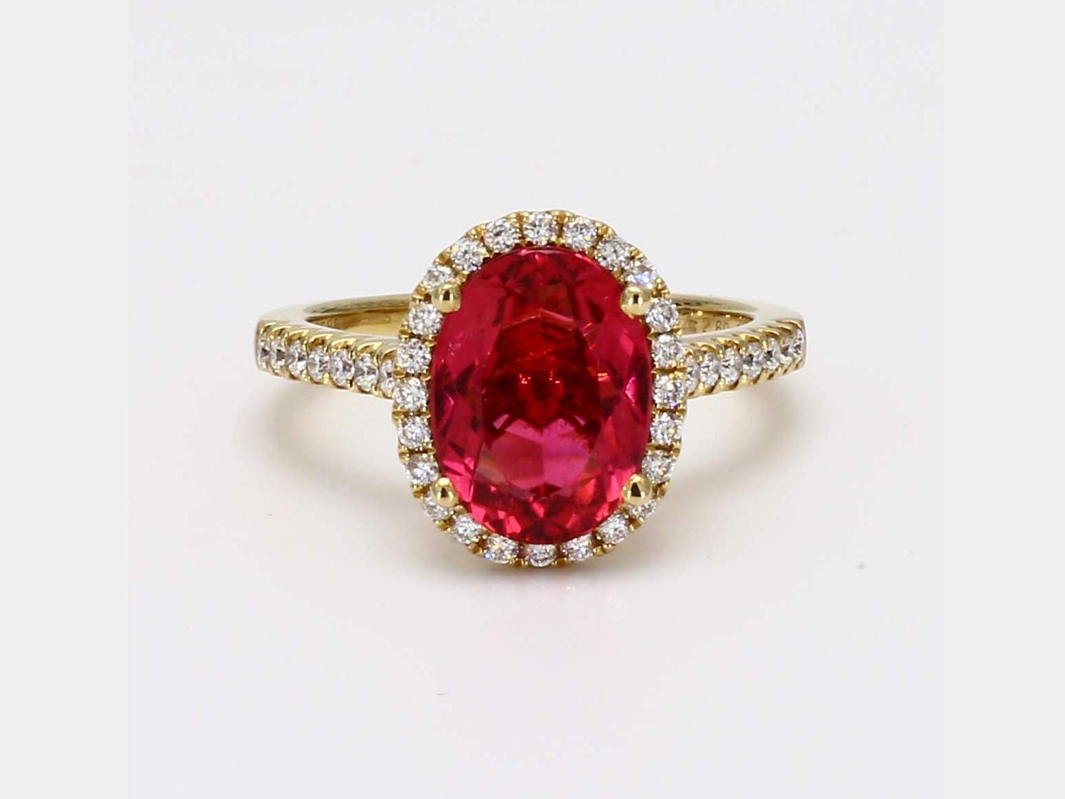 OVAL RUBELLITE & ROUND DIAMOND 14KY RING