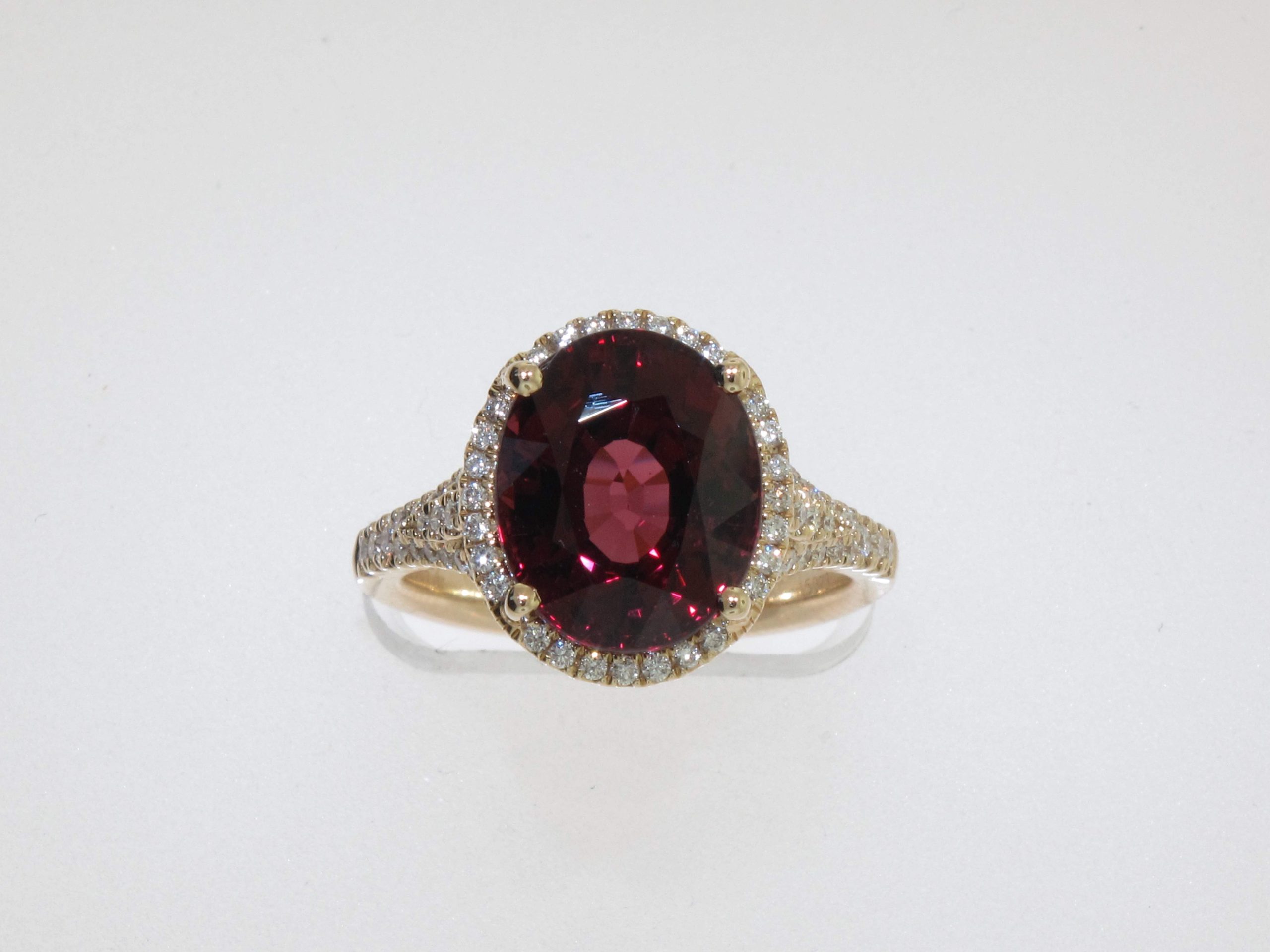 OVAL RHODOLITE GARNET & ROUND DIAMOND 14KY RING