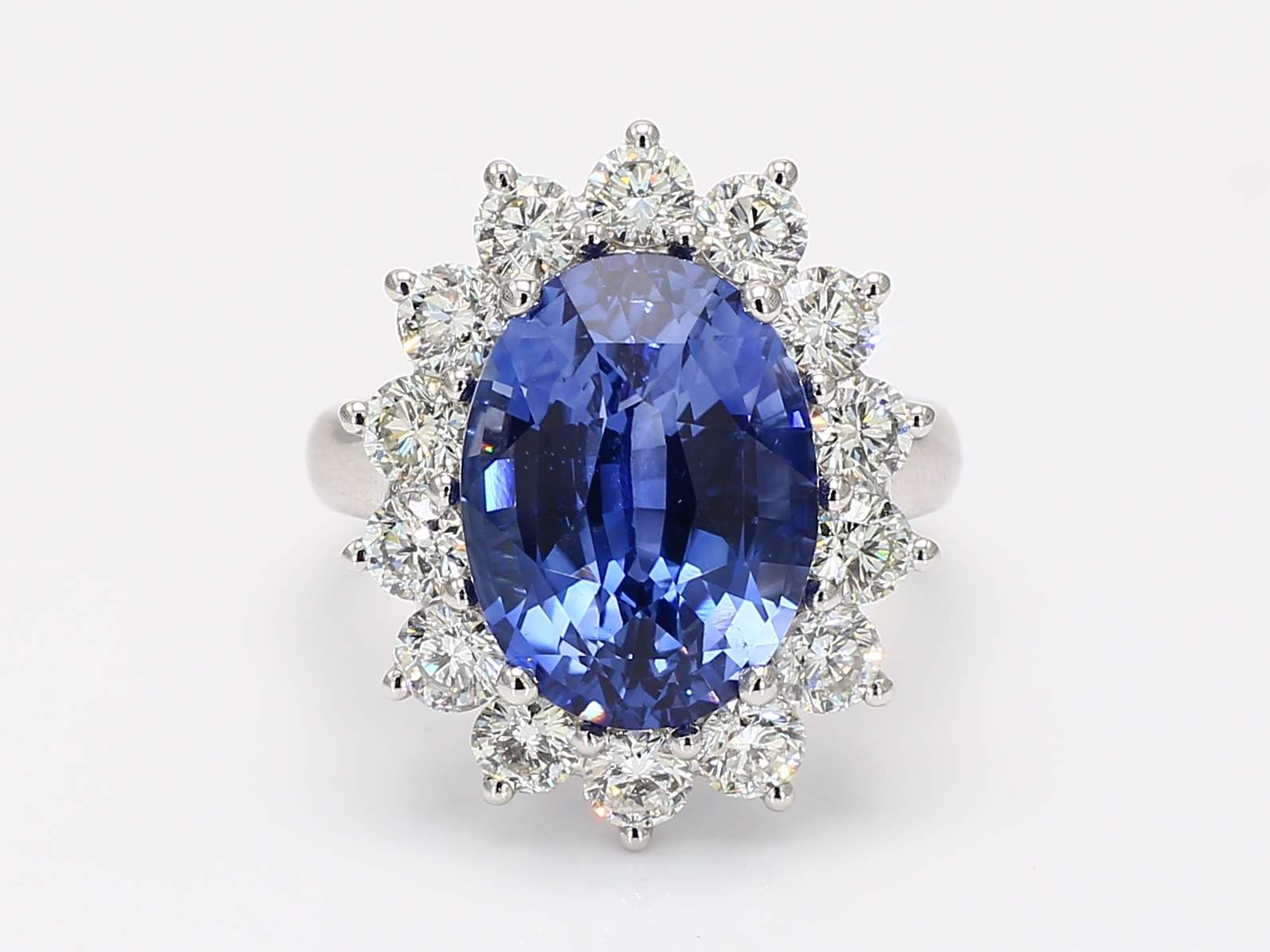 OVAL CEYLON SAPPHIRE CDC 2501235 & ROUND DIAMOND PLATINUM RING