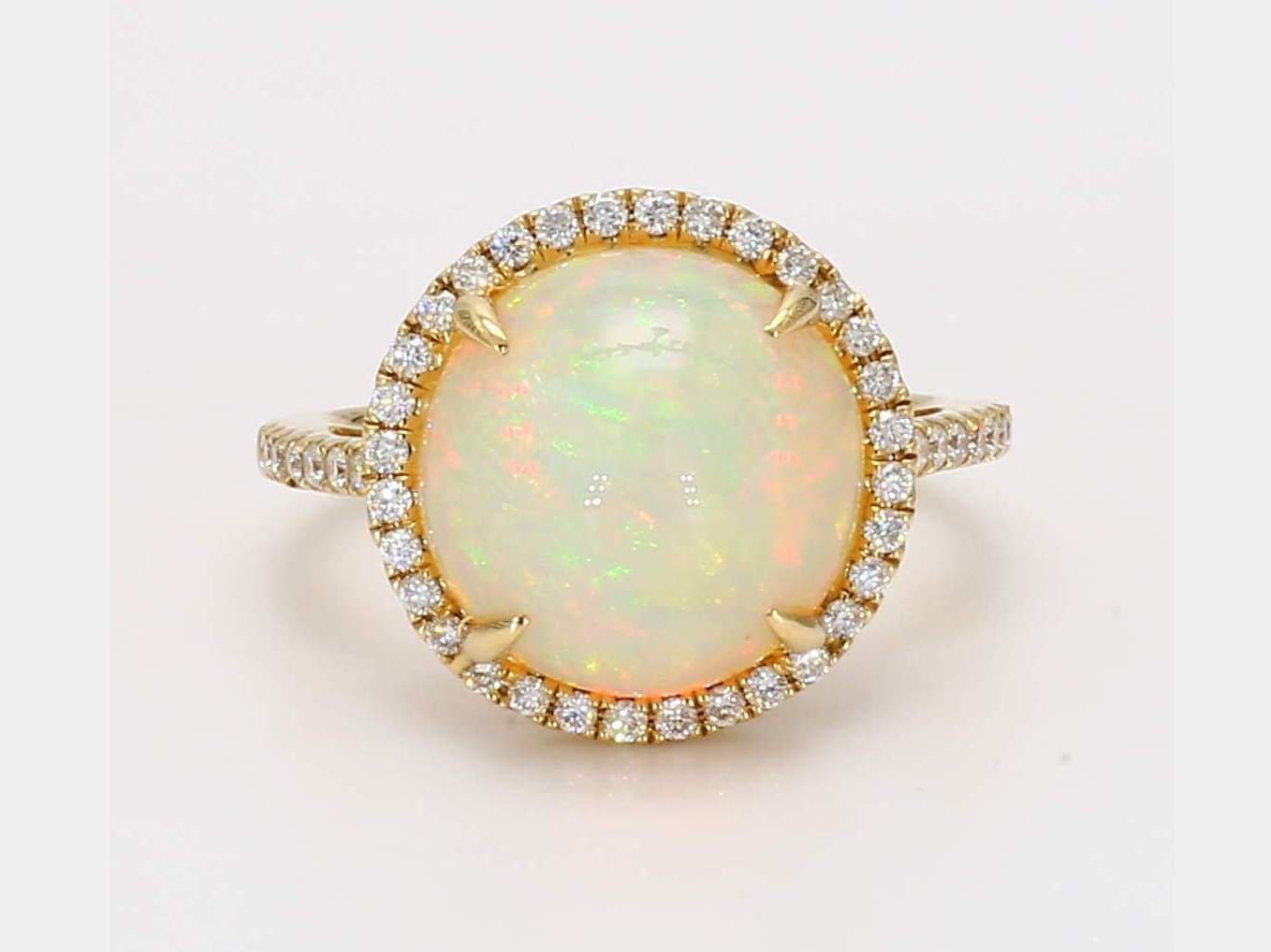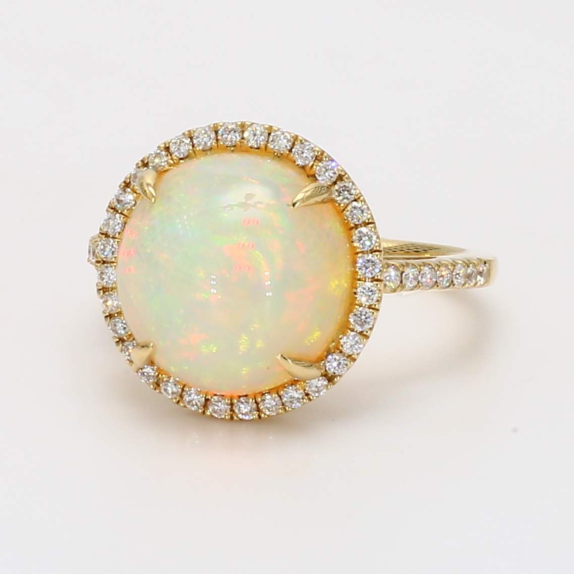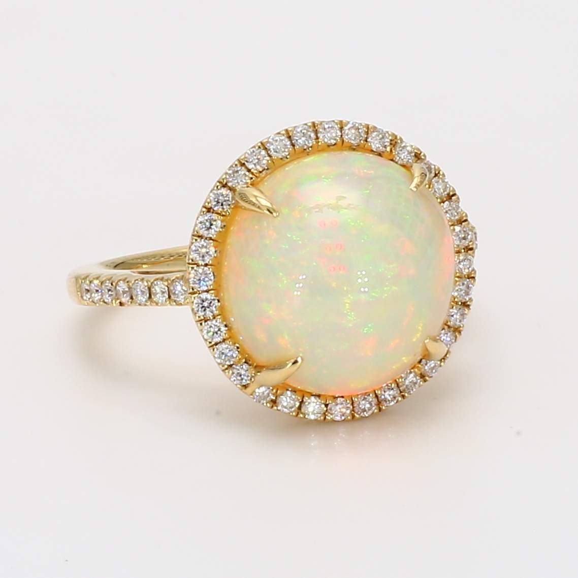 ROUND OPAL & ROUND DIAMOND 14KY RING
