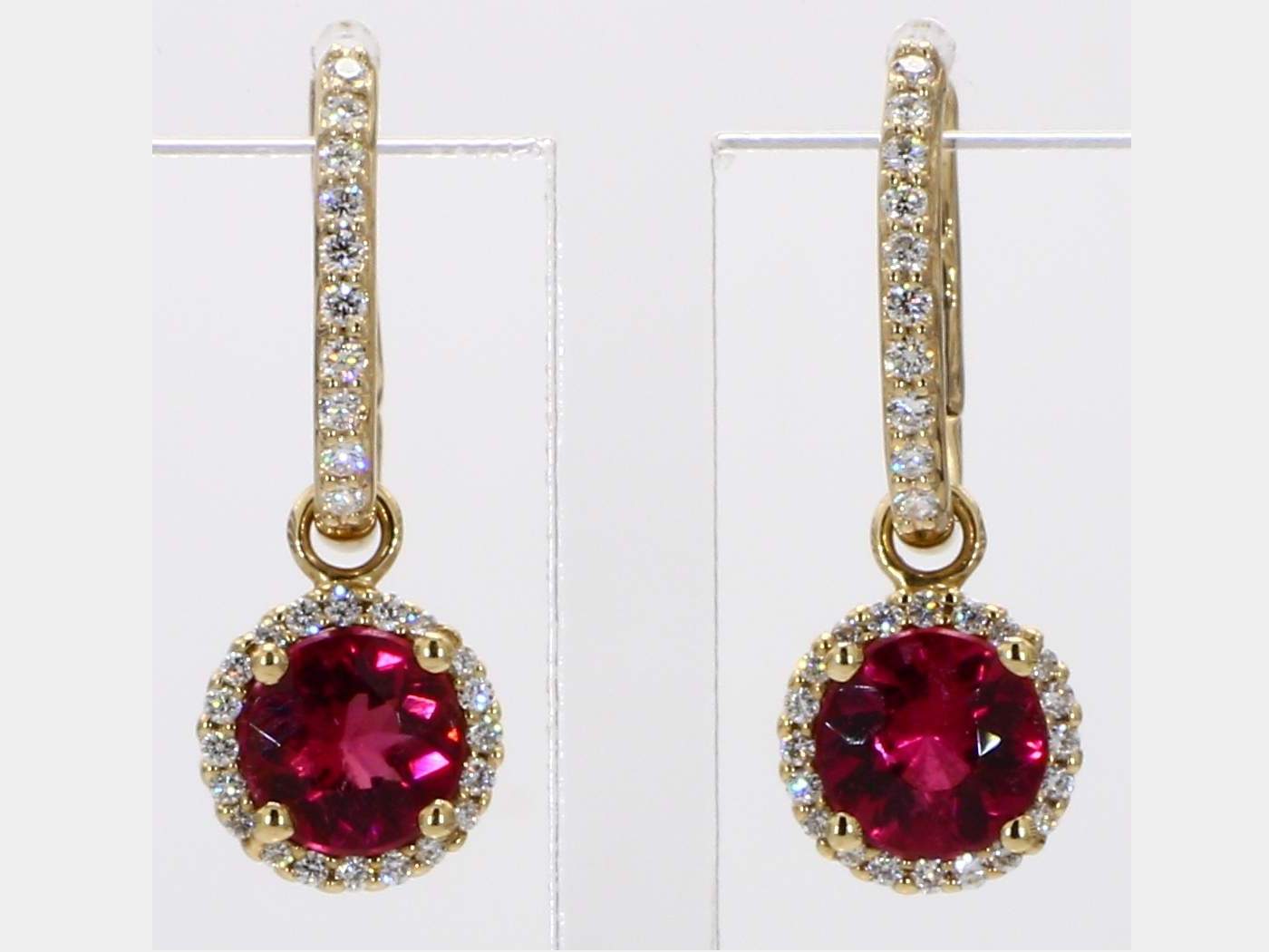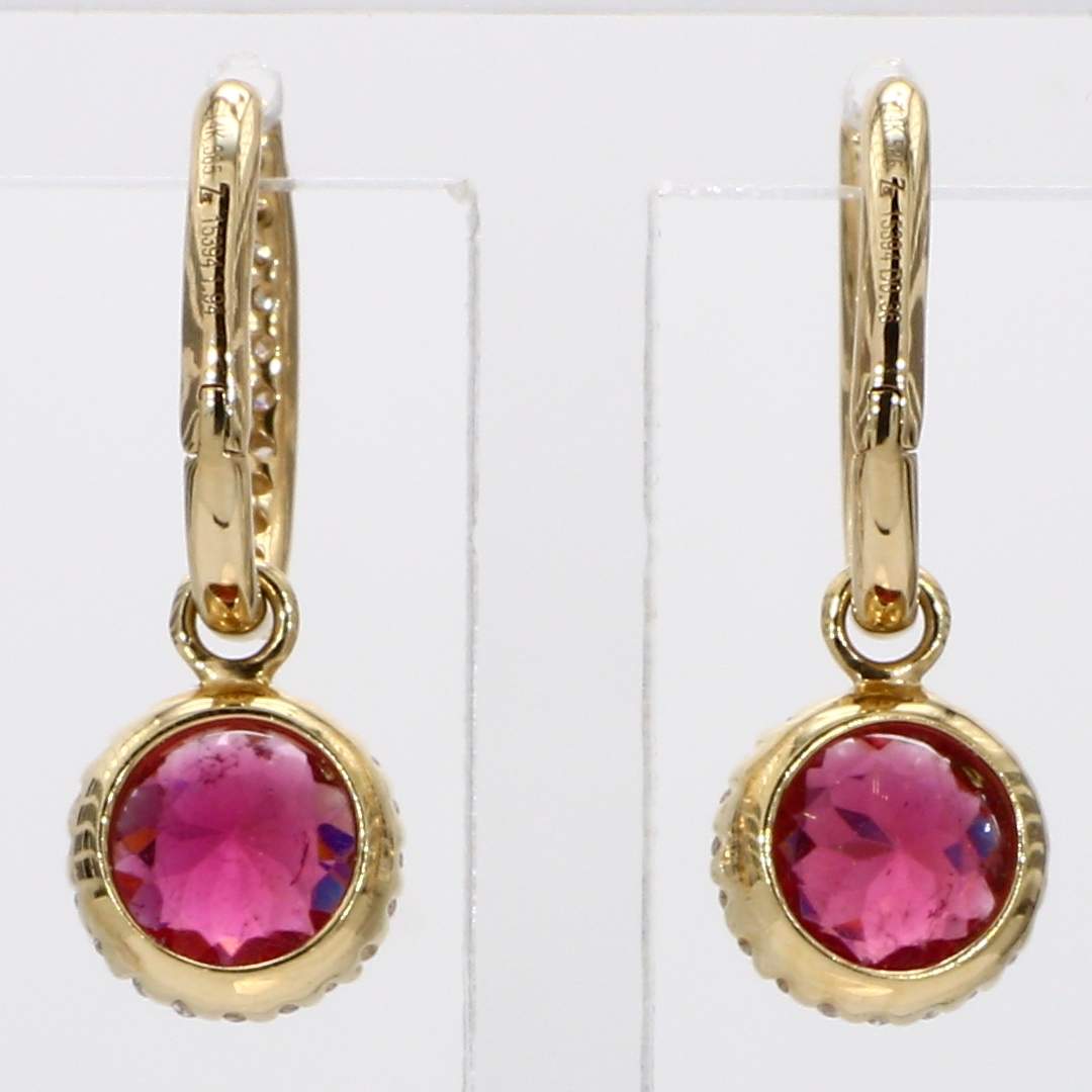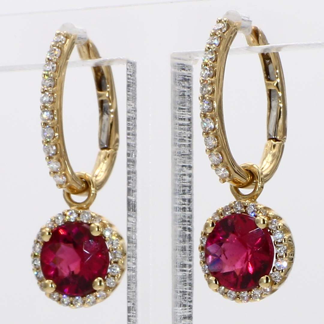 ROUND RUBELLITE & ROUND DIAMOND 14KY EARRING