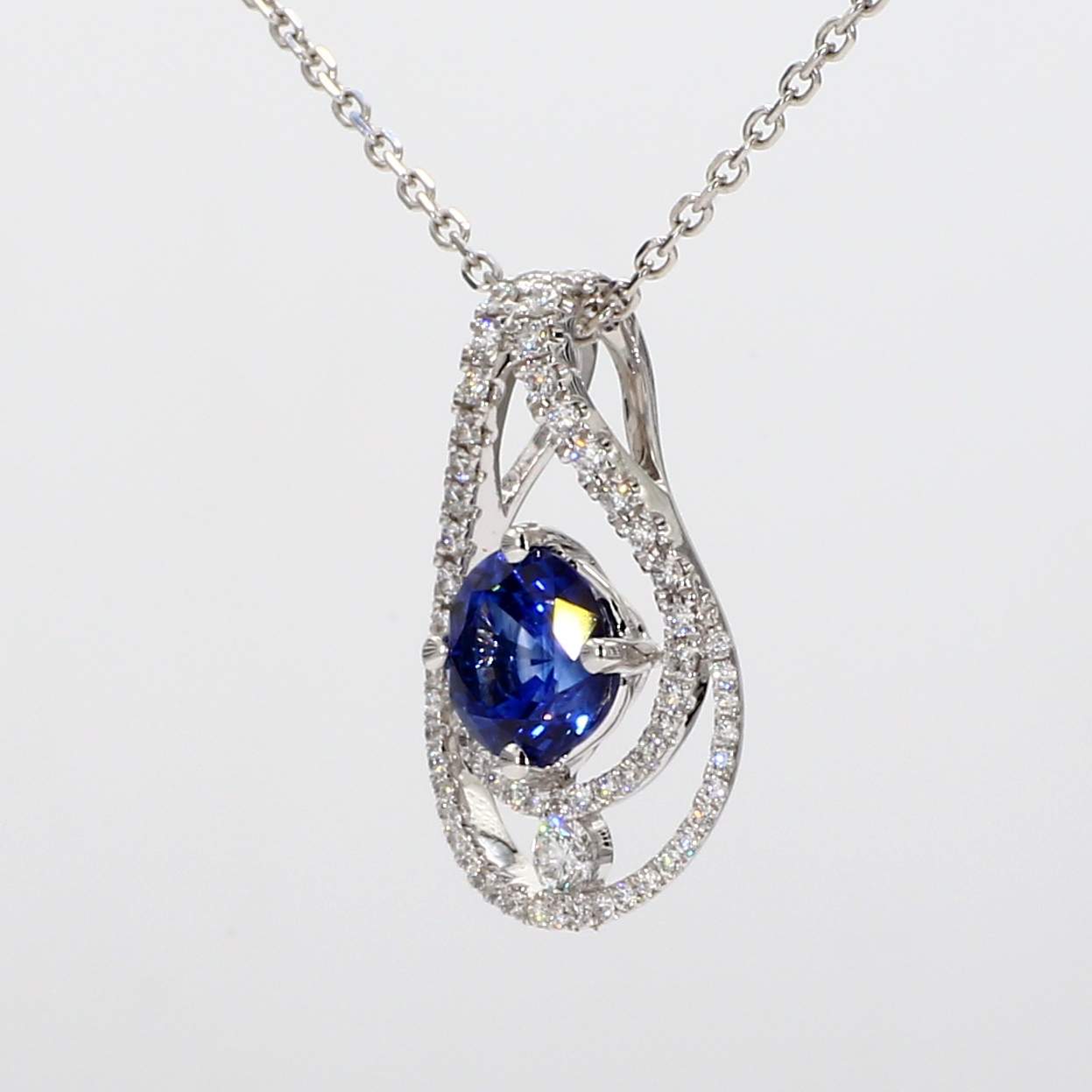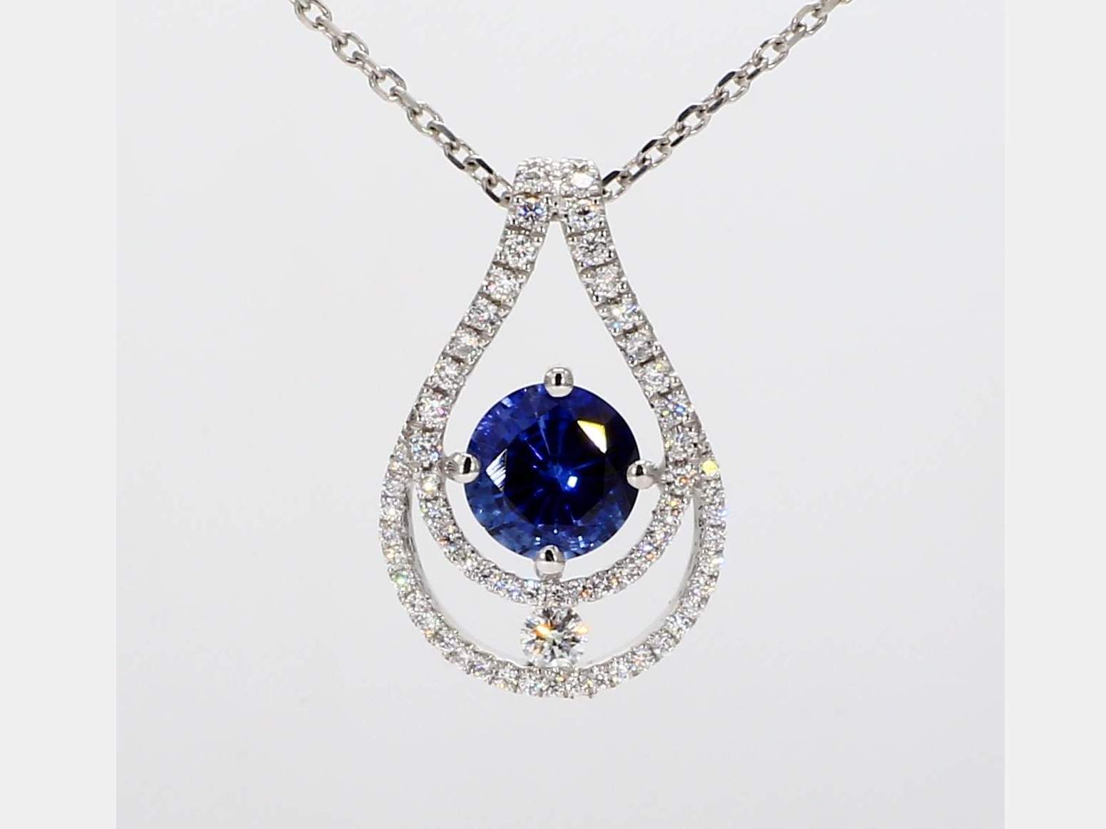 ROUND SAPPHIRE & ROUND DIAMOND 14KW PENDANT