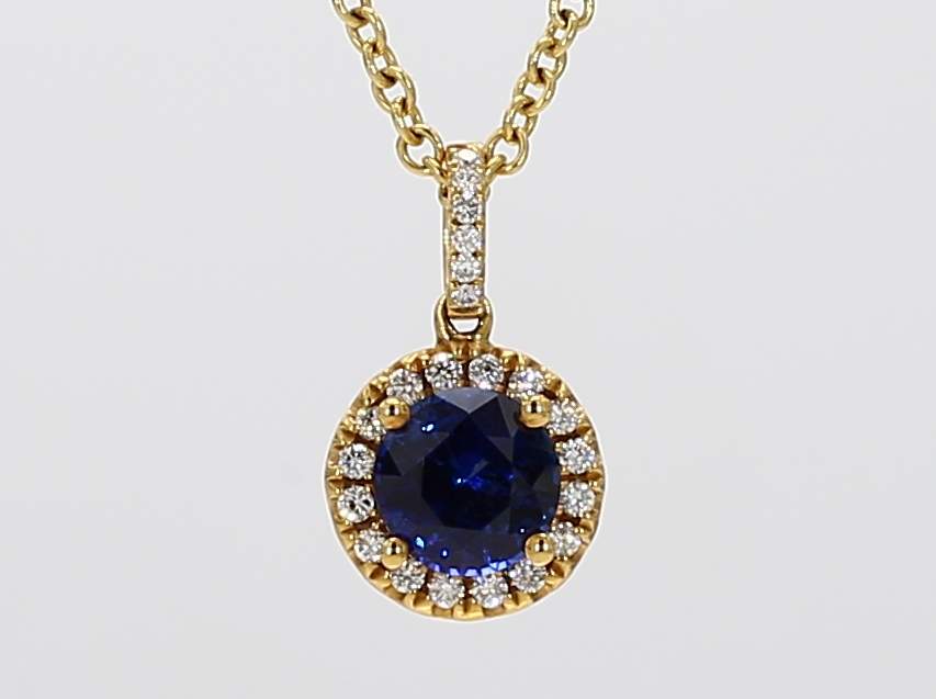 ROUND SAPPHIRE & ROUND DIAMOND 18KY PENDANT
