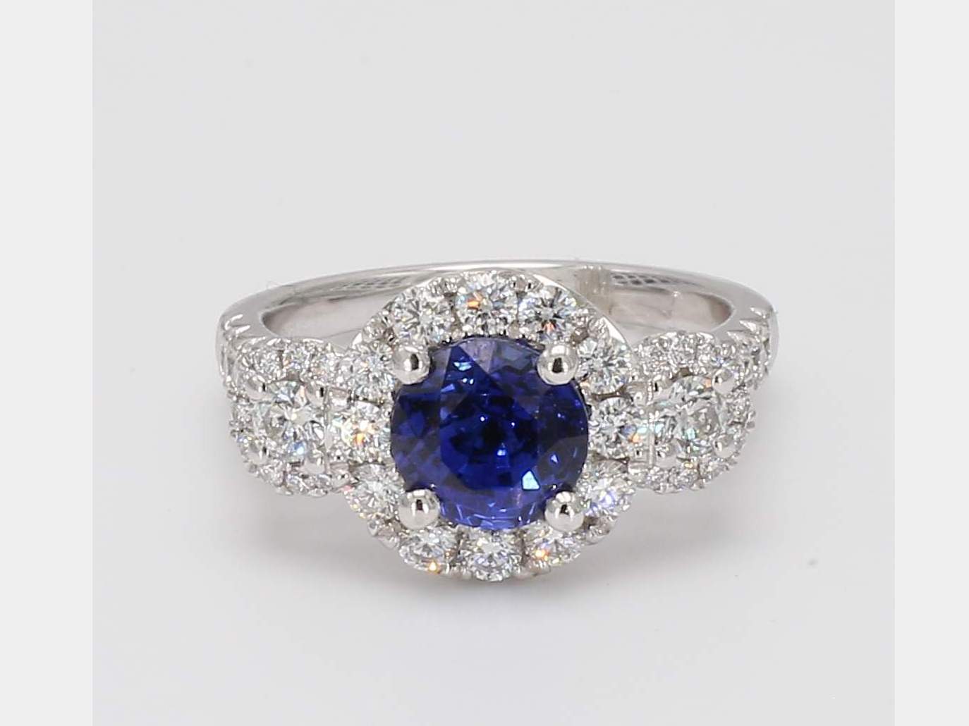 ROUND CEYLON SAPPHIRE CDC 1811360 & ROUND DIAMOND PLATINUM RING