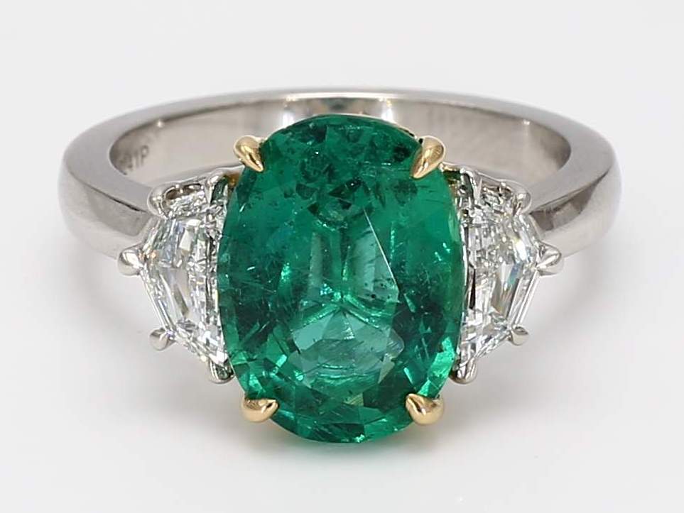 OVAL EMERALD CDC 2511646 & EPAULETTE DIAMOND PLATINUM RING