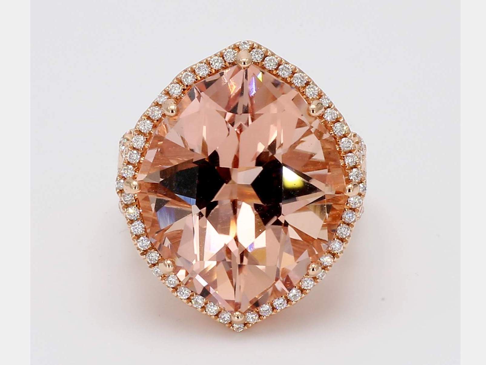 FANCY MORGANITE & ROUND DIAMOND 14KR RING