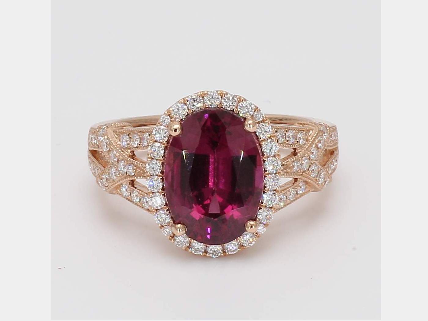 OVAL RHODOLITE GARNET & ROUND DIAMOND 14KR RING