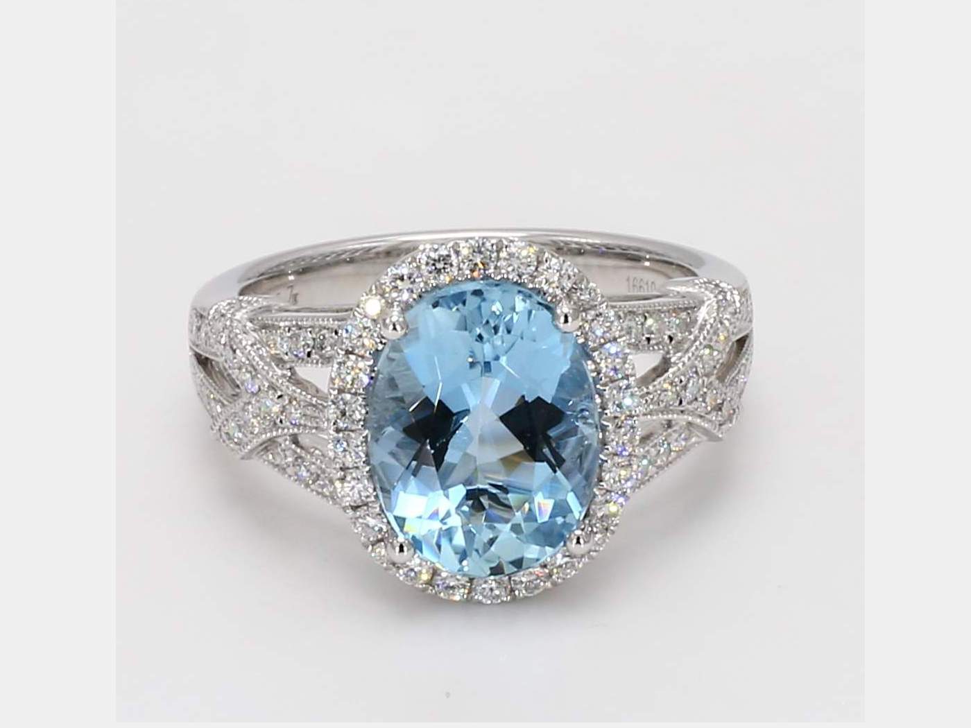 OVAL AQUAMARINE & ROUND DIAMOND 14KW RING