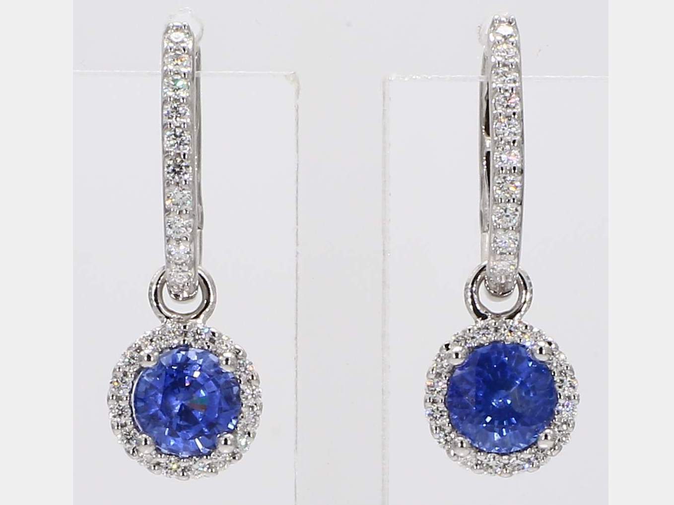 ROUND SAPPHIRE & ROUND DIAMOND 14KW EARRING