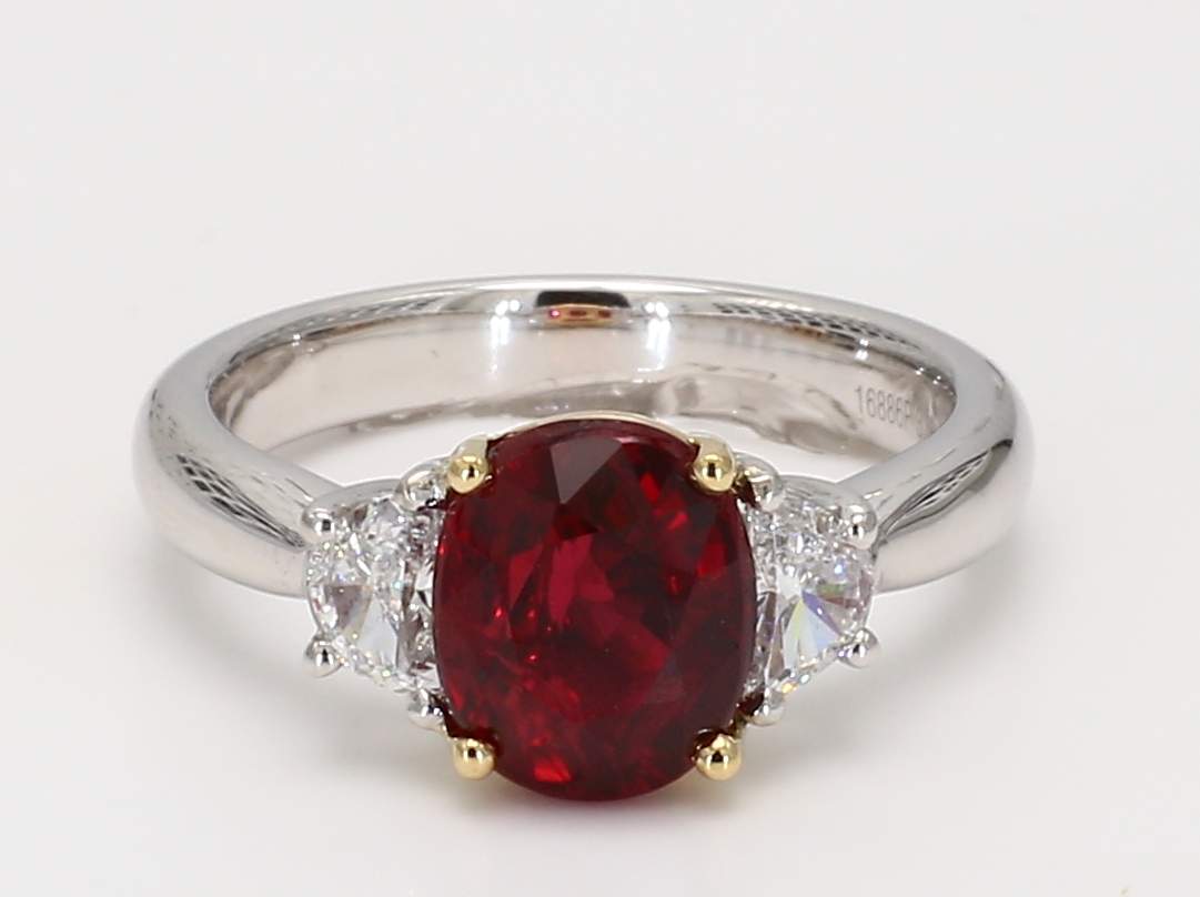OVAL RUBY GIA 6224136946 & HALF MOON DIAMOND PLATINUM RING