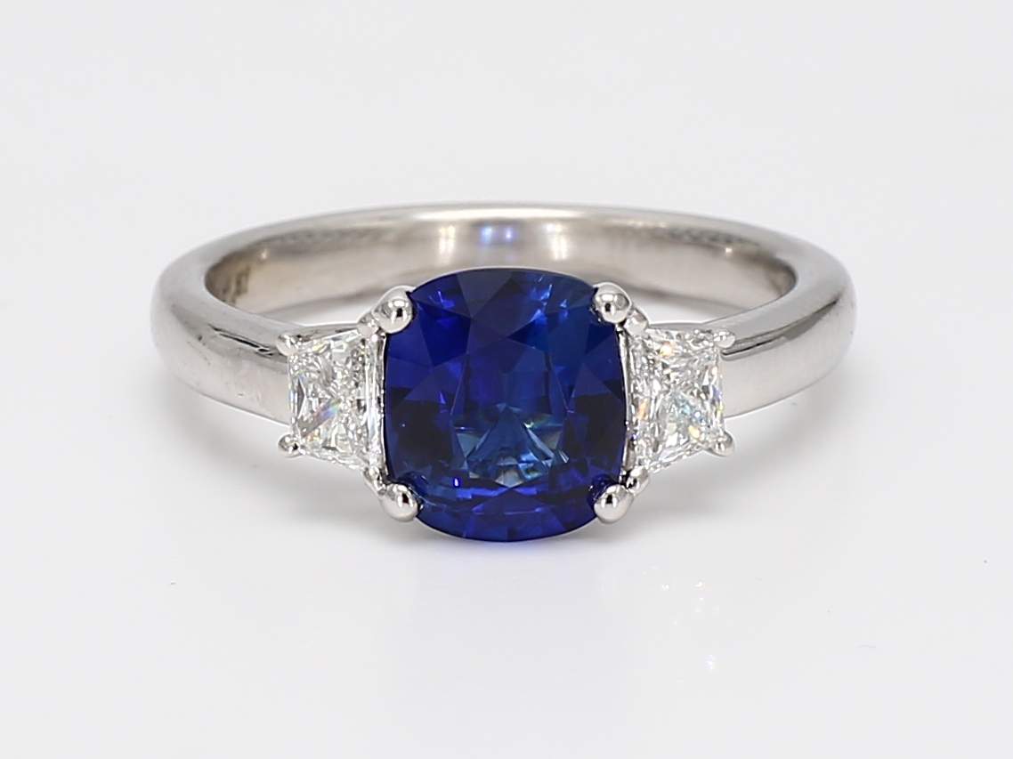 CUSHION SAPPHIRE & TRAPEZOID DIAMOND 14KW RING