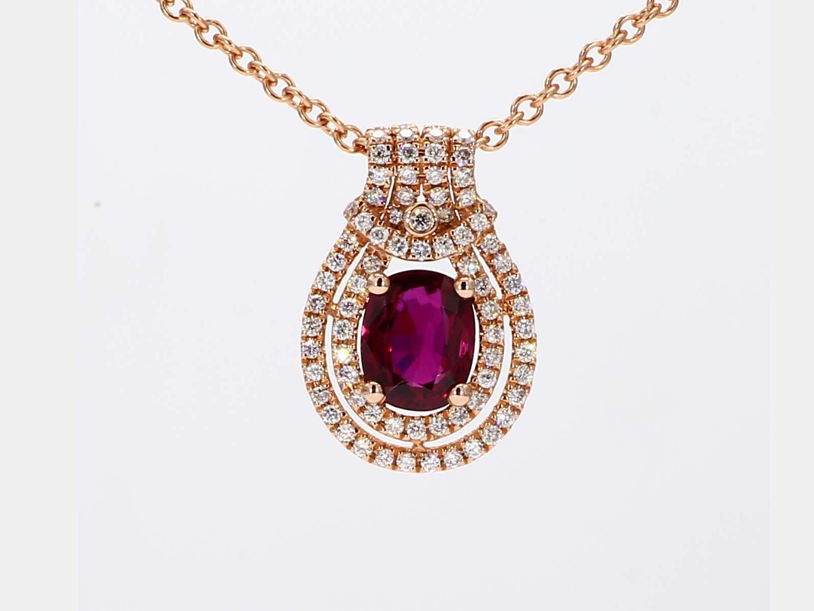 OVAL RUBY & ROUND DIAMOND 14KR PENDANT