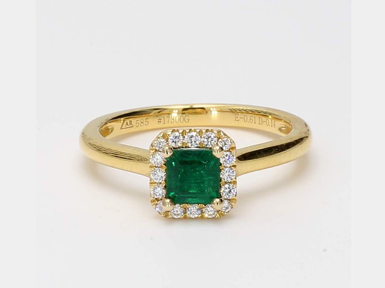 EMERALD CUT EMERALD & ROUND DIAMOND 14KY RING