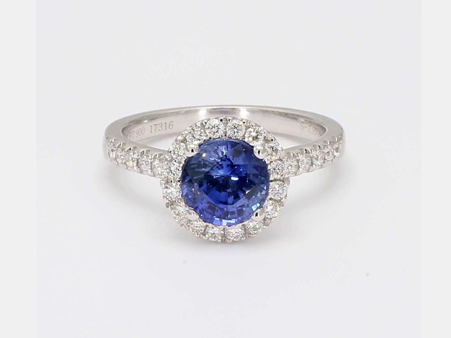 ROUND SAPPHIRE & ROUND DIAMOND PLATINUM RING