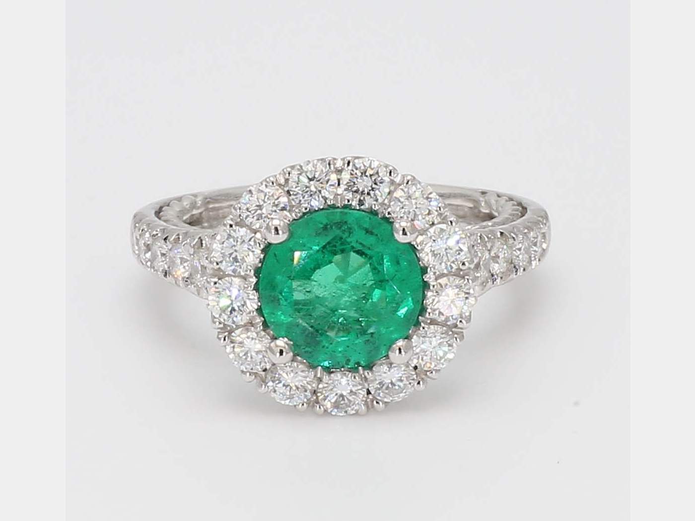 ROUND EMERALD MINOR GIA 6204894655 & ROUND DIAMOND PLATINUM RING