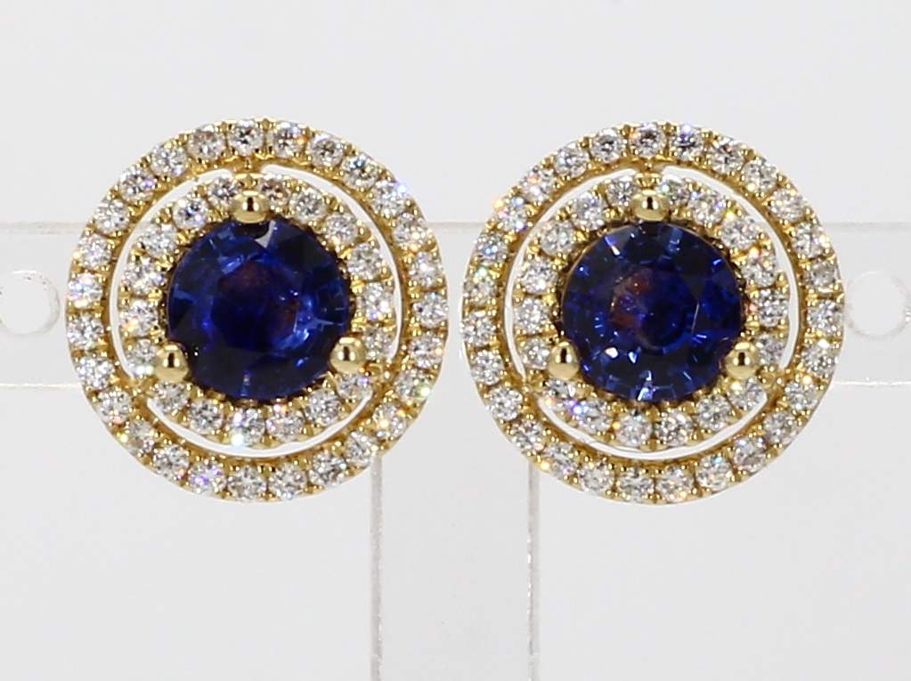ROUND SAPPHIRE & ROUND DIAMOND 14KY EARRING