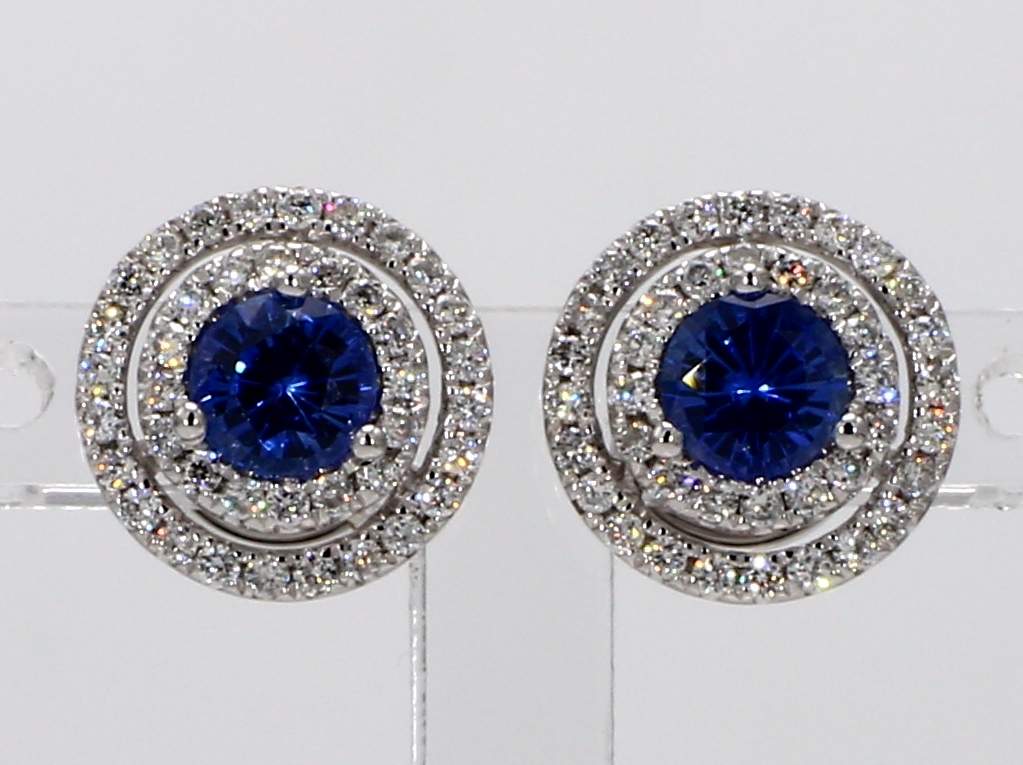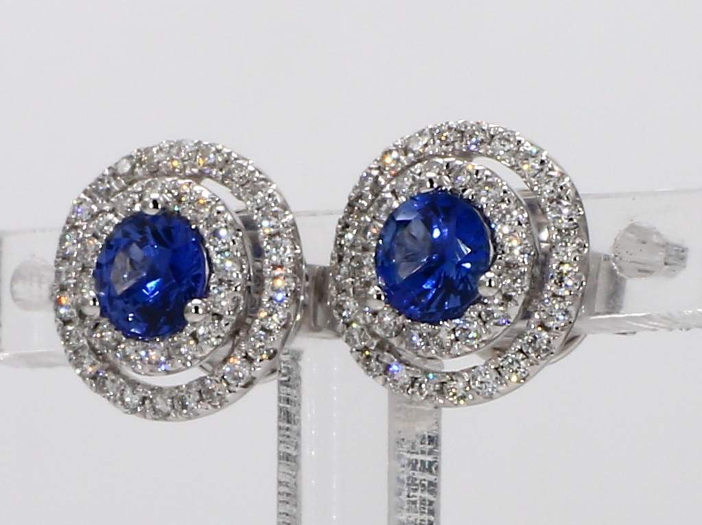 ROUND SAPPHIRE & ROUND DIAMOND 14KW EARRING