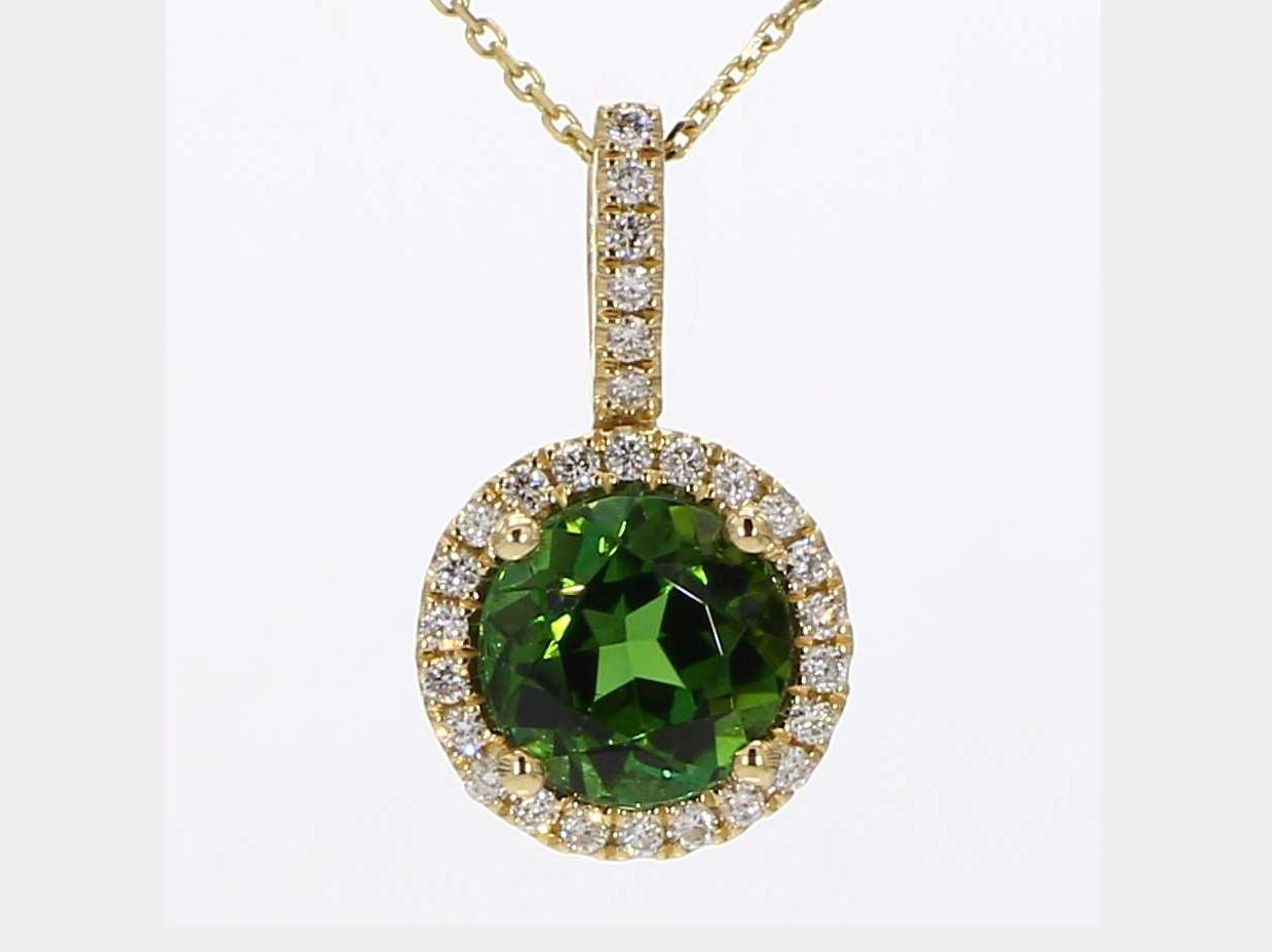 ROUND GREEN TOURMALINE & ROUND DIAMOND 14KY PENDANT