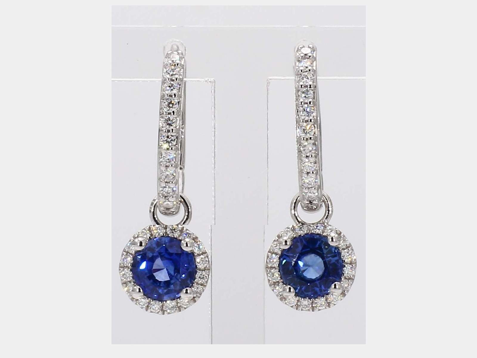 ROUND SAPPHIRE & ROUND DIAMOND 14KW EARRING