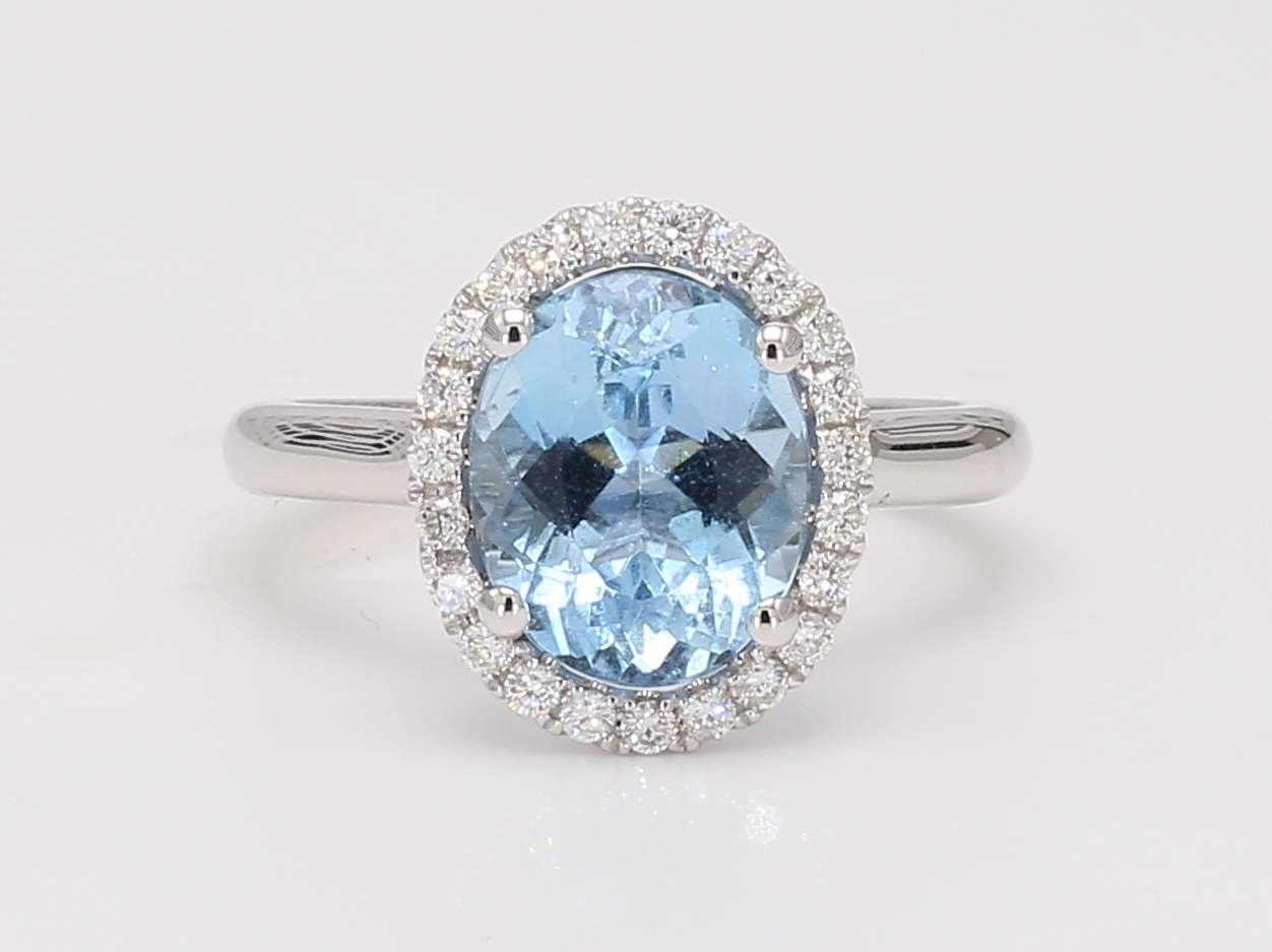 OVAL AQUAMARINE & ROUND DIAMOND 14KW RING