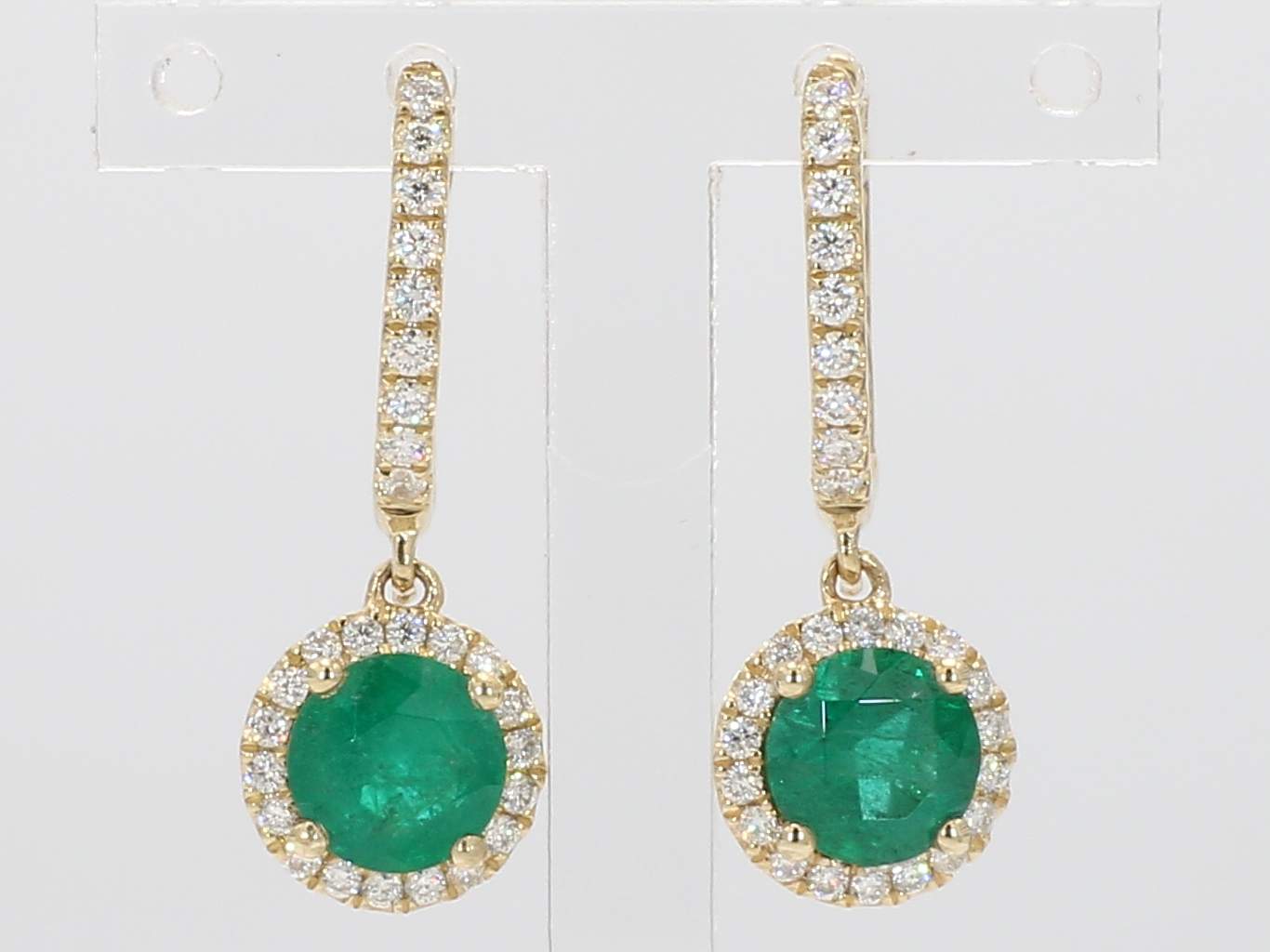 ROUND EMERALD & ROUND DIAMOND 14KY EARRING