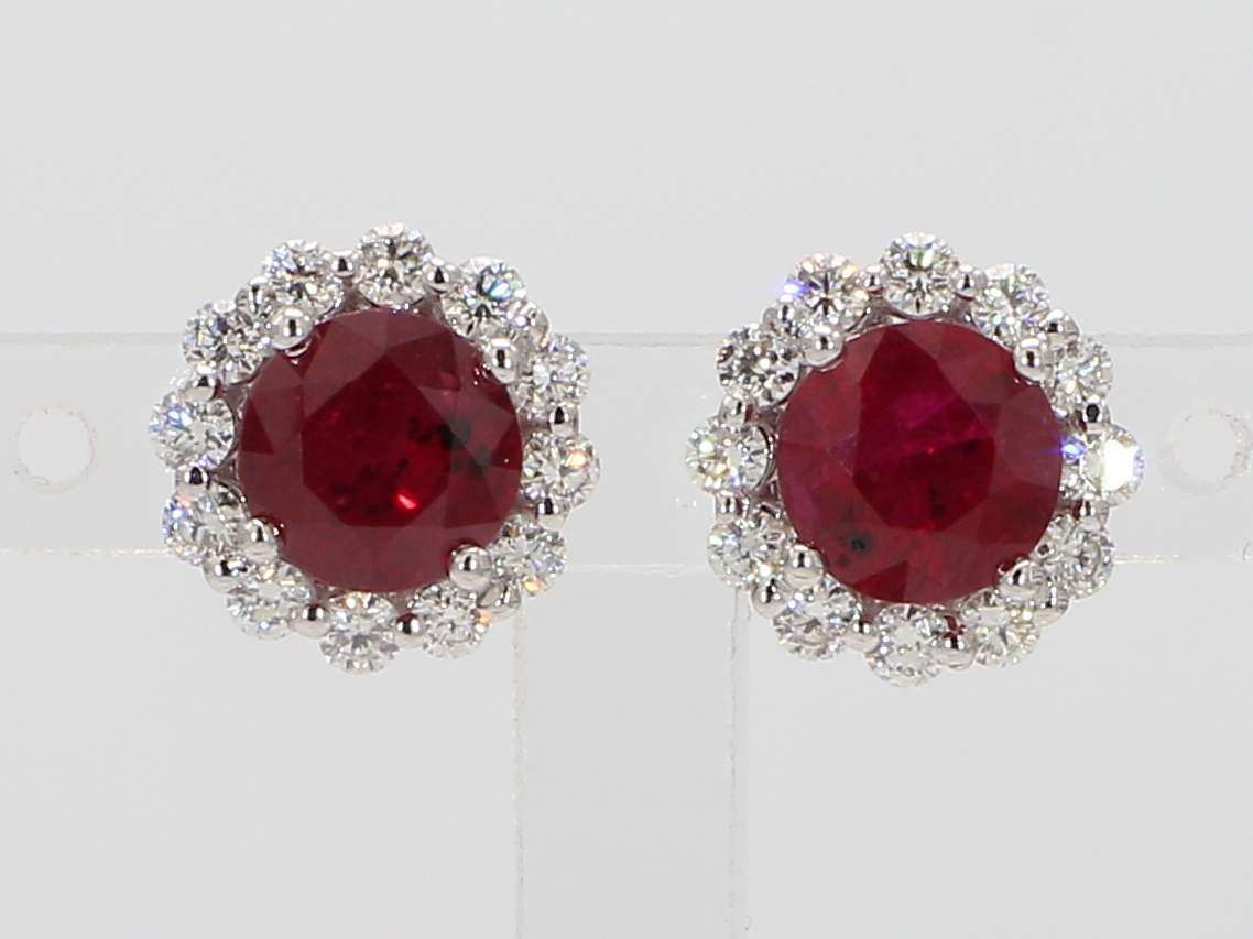 ROUND RUBY & ROUND DIAMOND 18KW EARRING