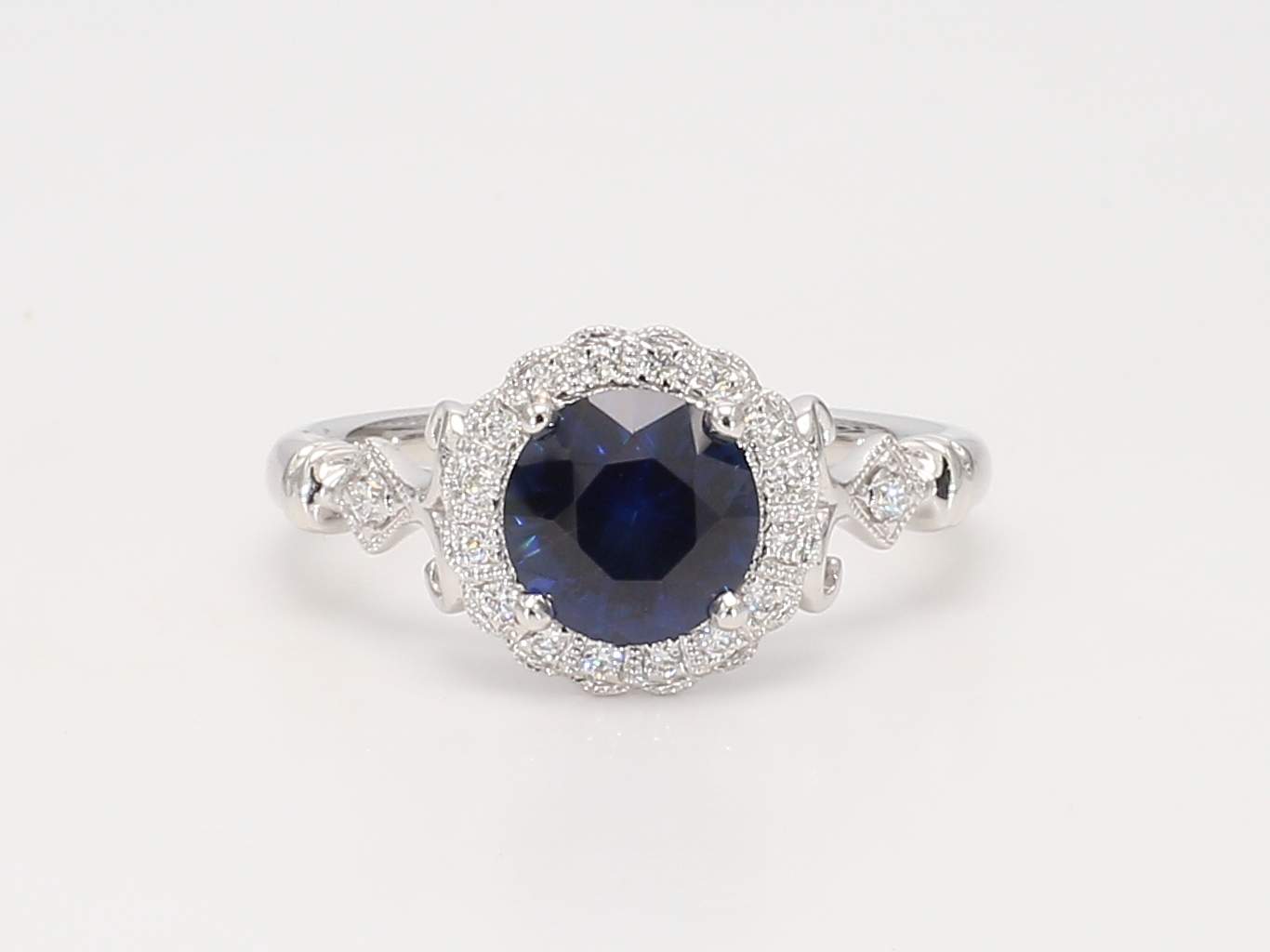 ROUND SAPPHIRE & ROUND DIAMOND 14KW RING