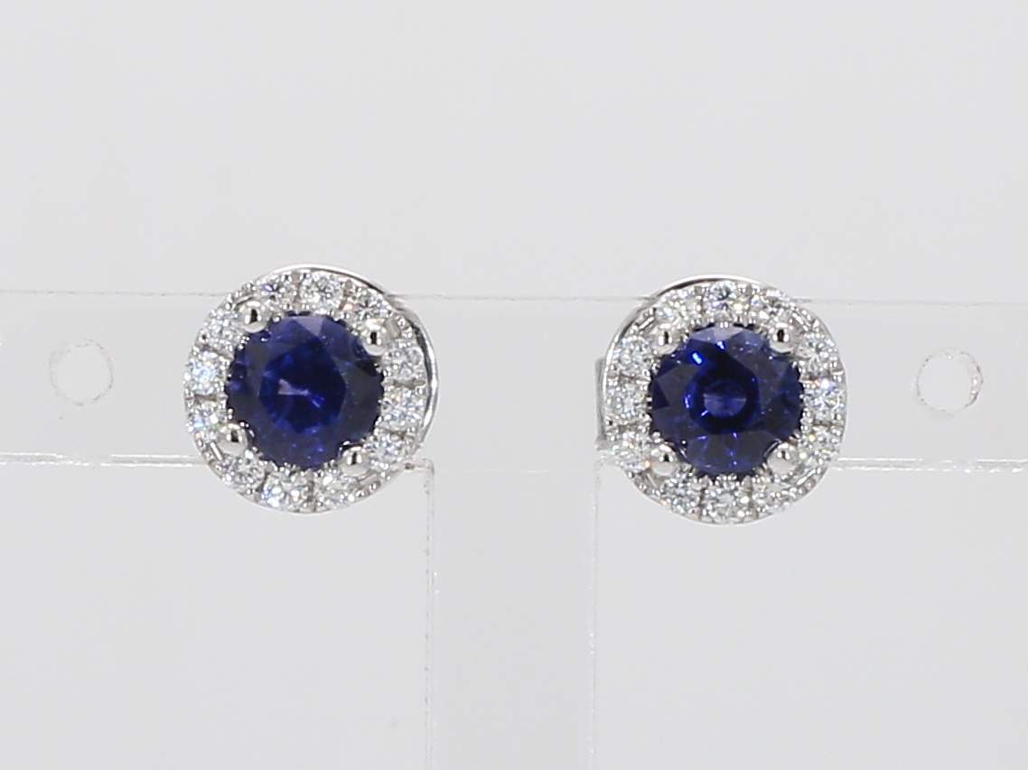 ROUND SAPPHIRE & ROUND DIAMOND 14KW EARRING