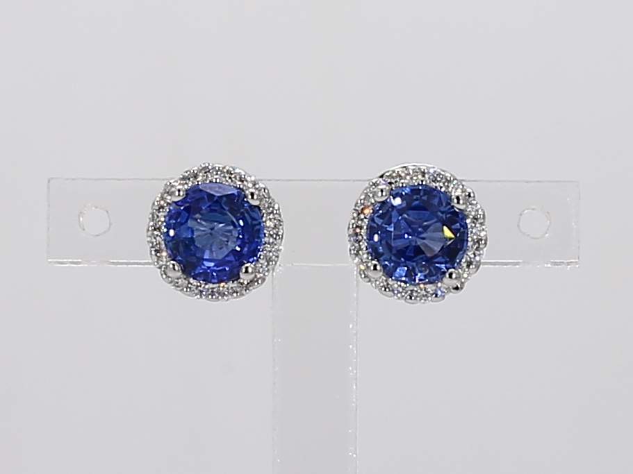 ROUND SAPPHIRE & ROUND DIAMOND 14KW EARRING