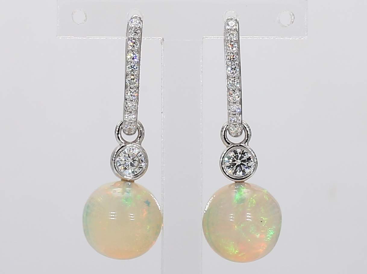OPAL BALL & ROUND DIAMOND 14KW EARRING
