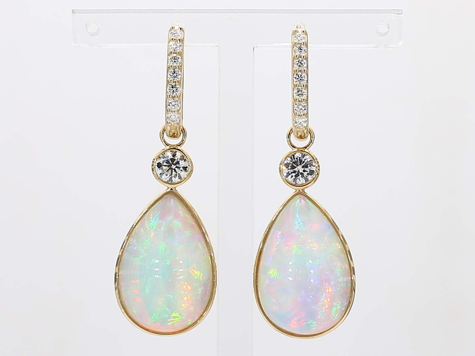 PEAR SHAPE OPAL & ROUND DIAMOND 14KY EARRING