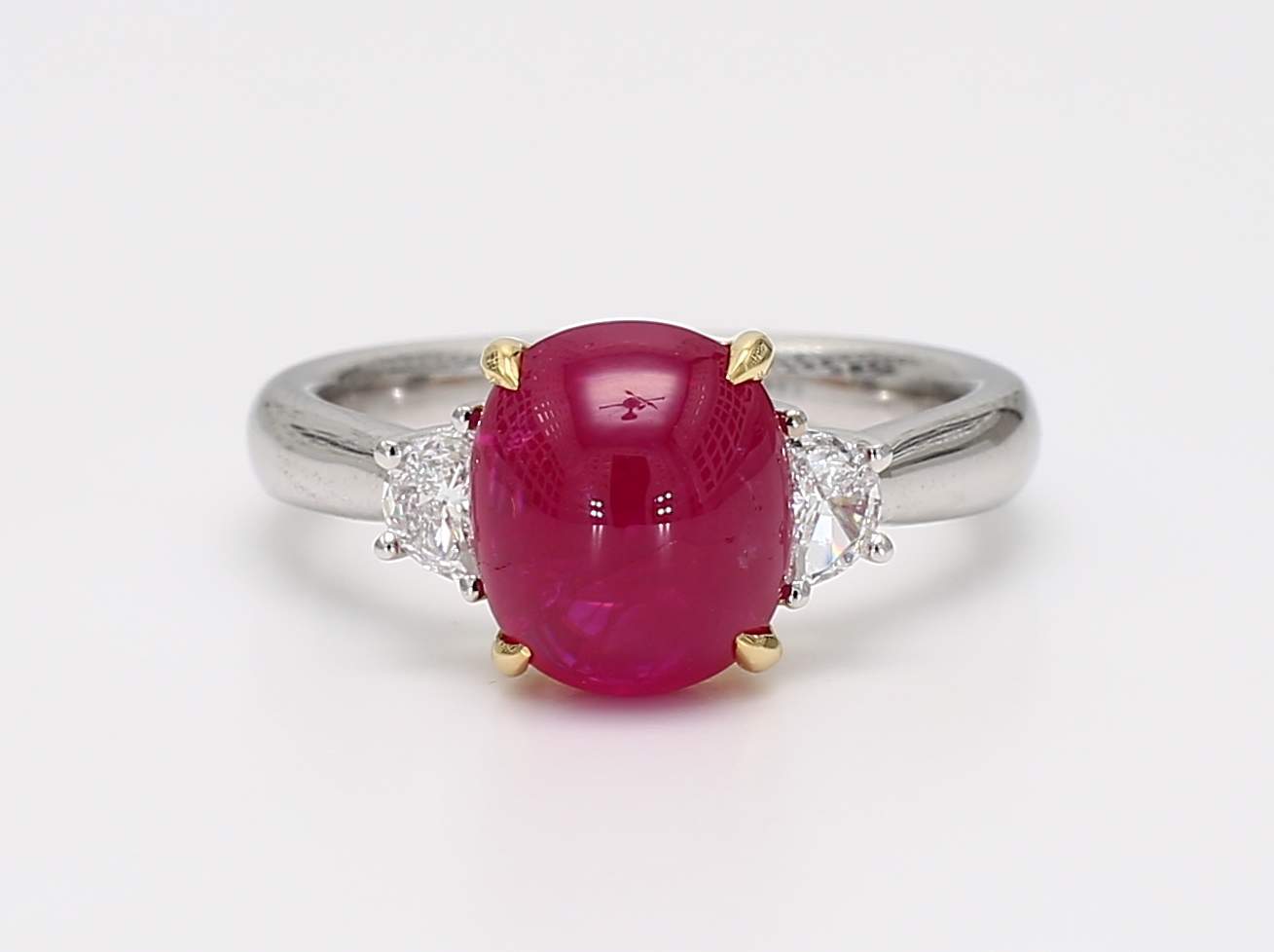 CABOUCHON RUBY & HALF MOON DIAMOND 18KW RING