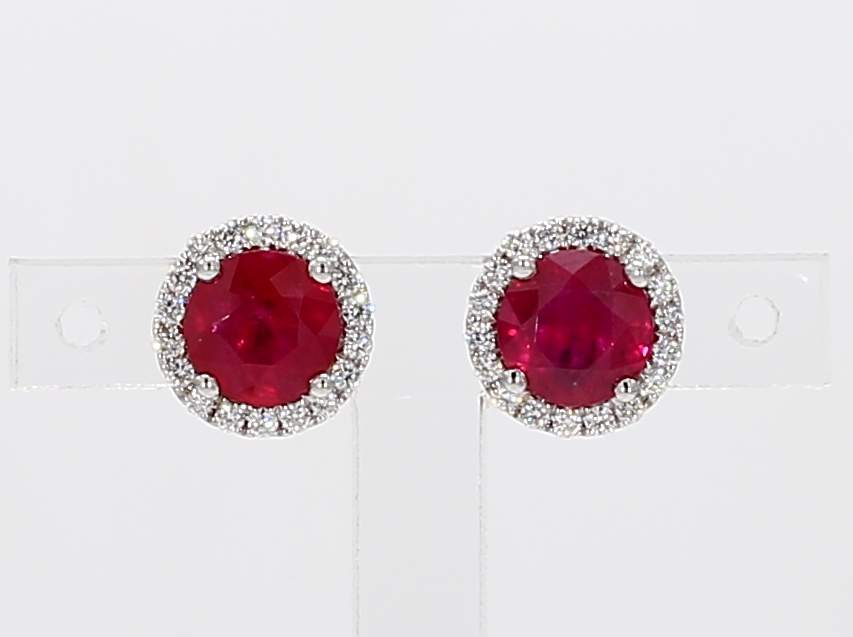 ROUND RUBY & ROUND DIAMOND 14KW EARRING