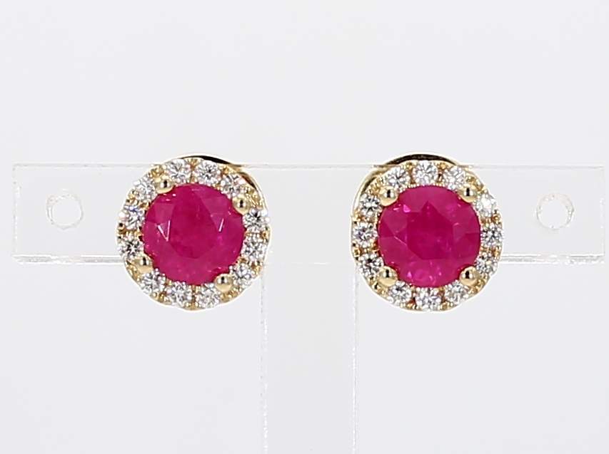 ROUND RUBY & ROUND DIAMOND 14KY EARRING