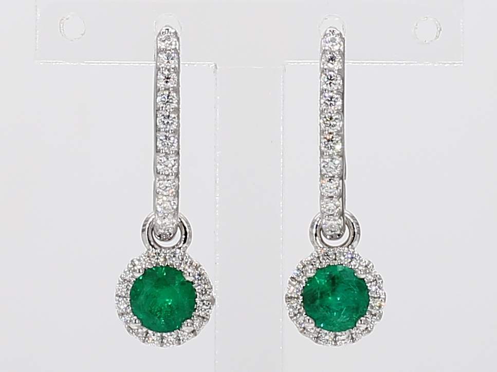 ROUND EMERALD & ROUND DIAMOND 14KW EARRING