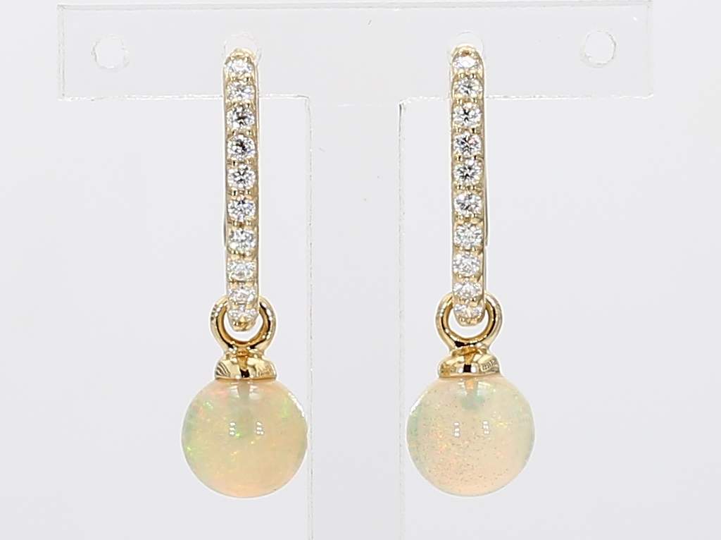 OPAL BALL & ROUND DIAMOND 14KY EARRING