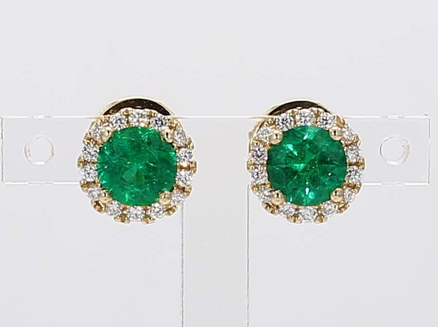 ROUND EMERALD & ROUND DIAMOND 14KY EARRING