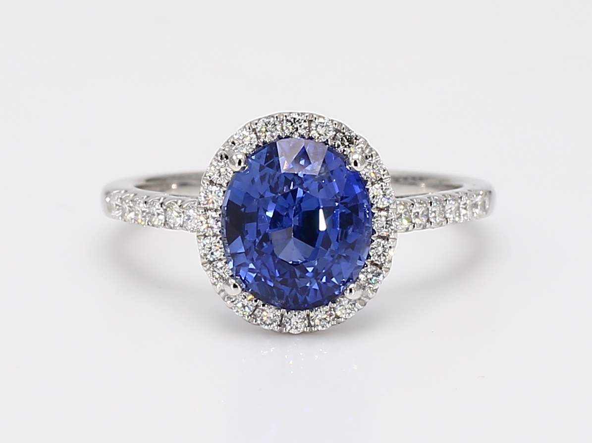 OVAL SAPPHIRE & ROUND DIAMOND 14KW RING