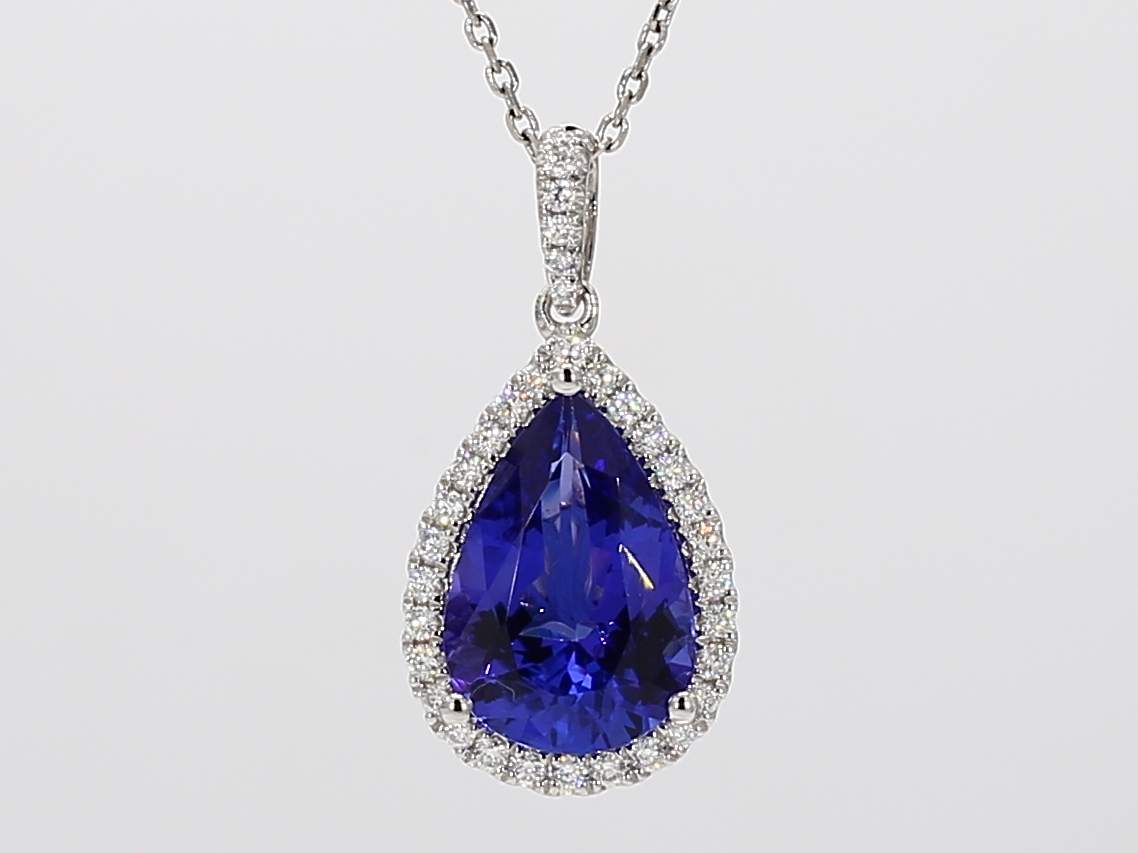 PEAR SHAPE TANZANITE & ROUND DIAMOND 14KW PENDANT