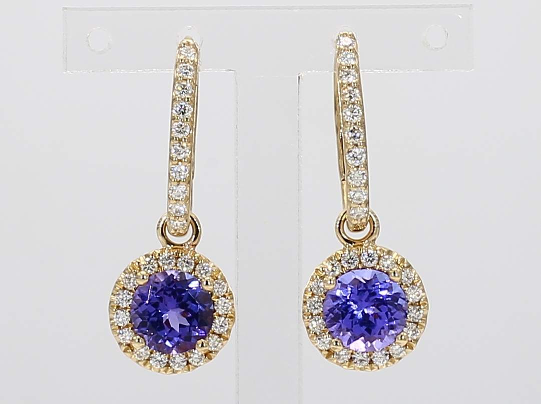 ROUND TANZANITE & ROUND DIAMOND 14KY EARRING