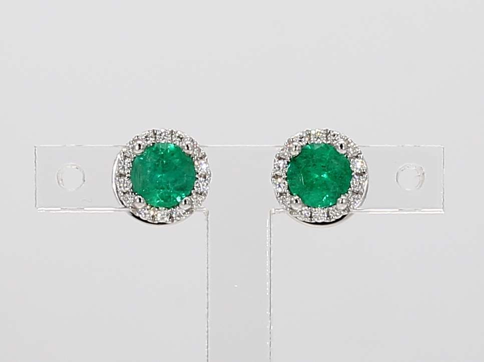 ROUND EMERALD & ROUND DIAMOND 14KW EARRING